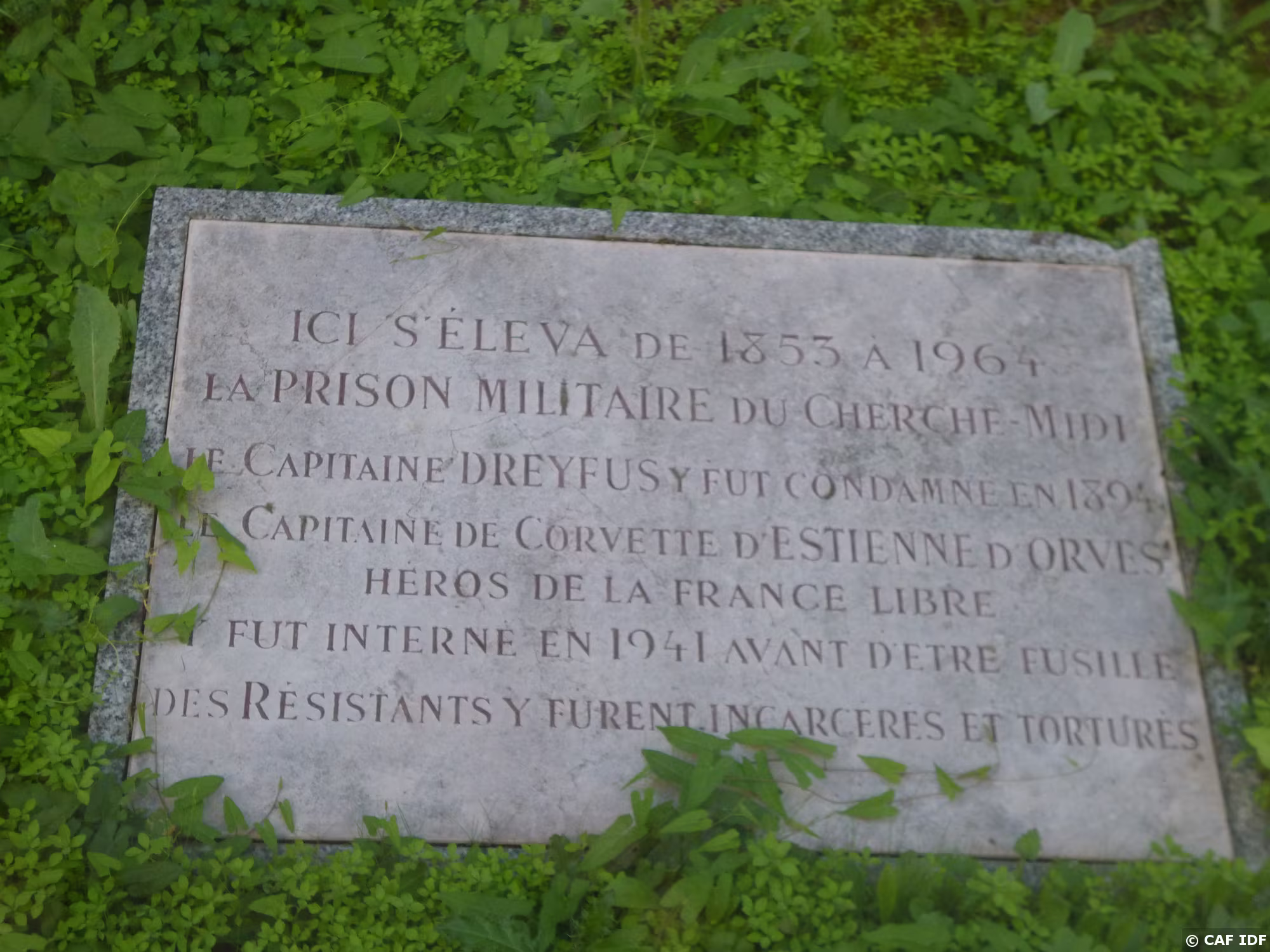 P1170375 Monument commémorant l'emplacement de l'ancienne prison du Cherche-Midi construite en 1853 et démolie en 1966. Nouvel édifice construit en 1970 abritant la...