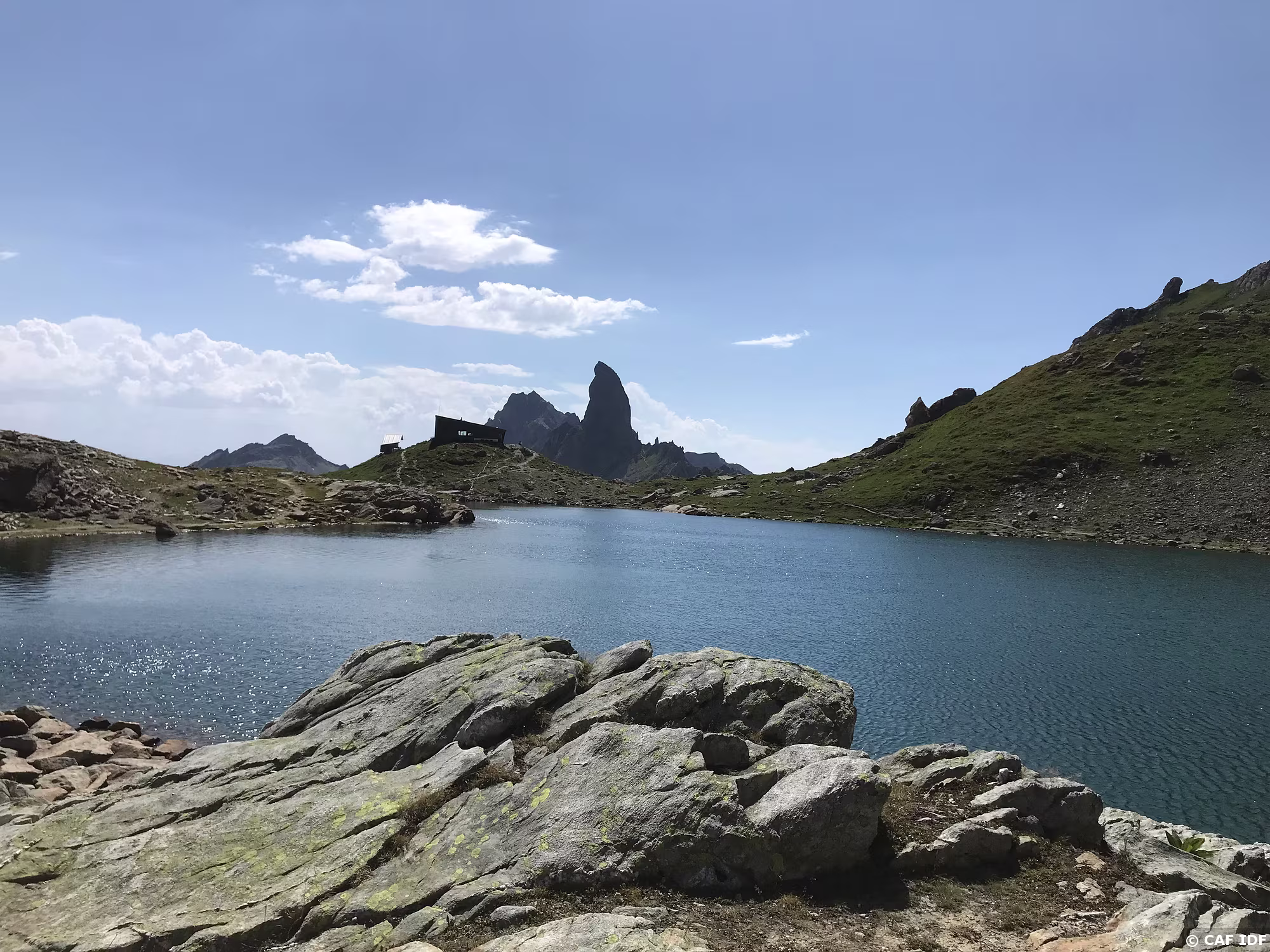 La Pierra Menta derrière le lac et le refuge du Presset.