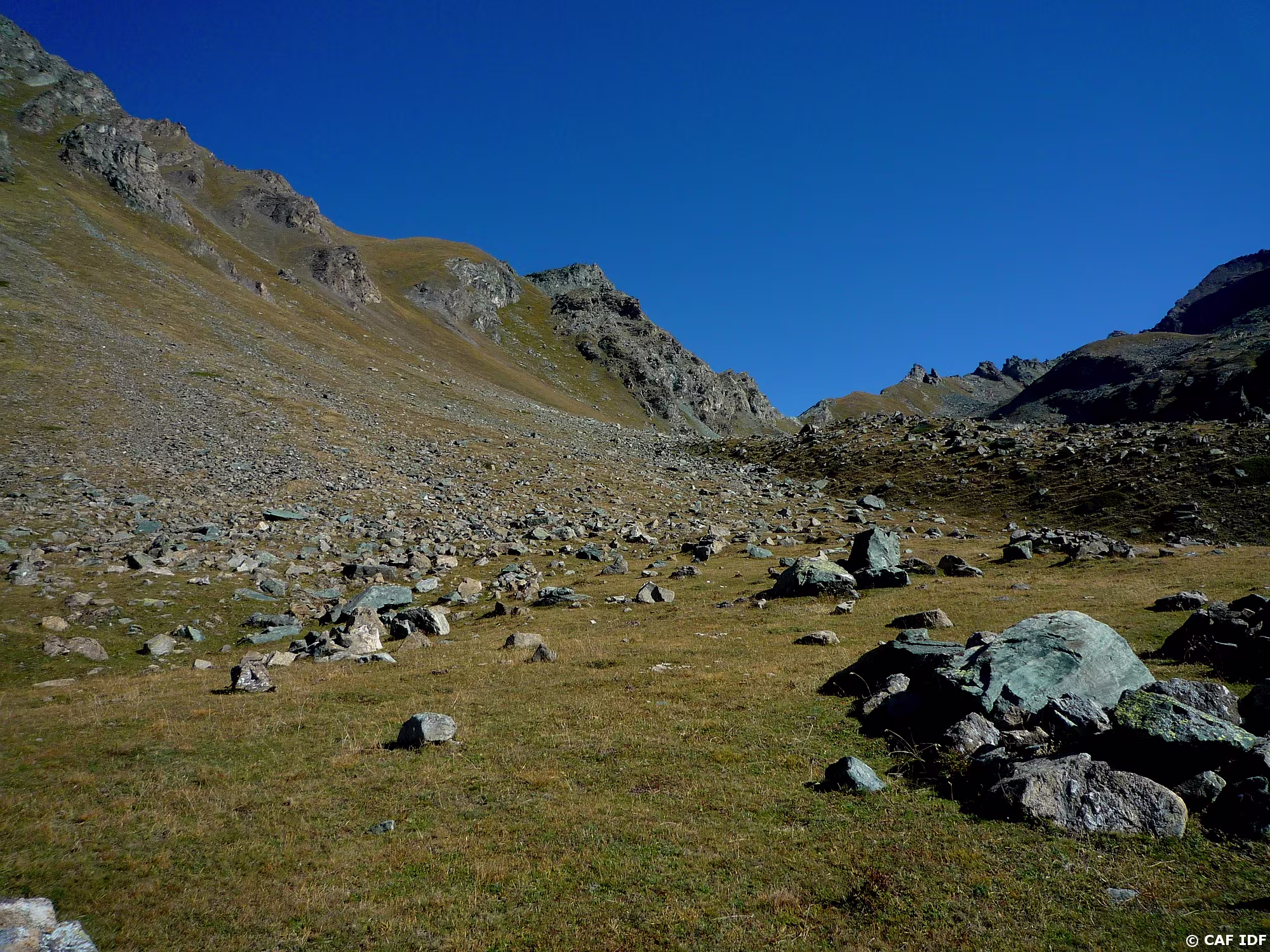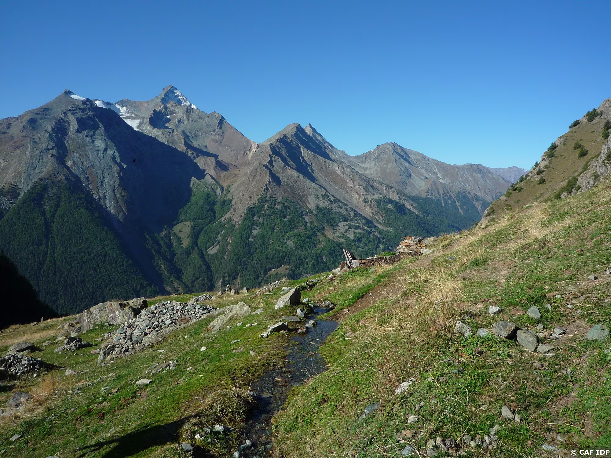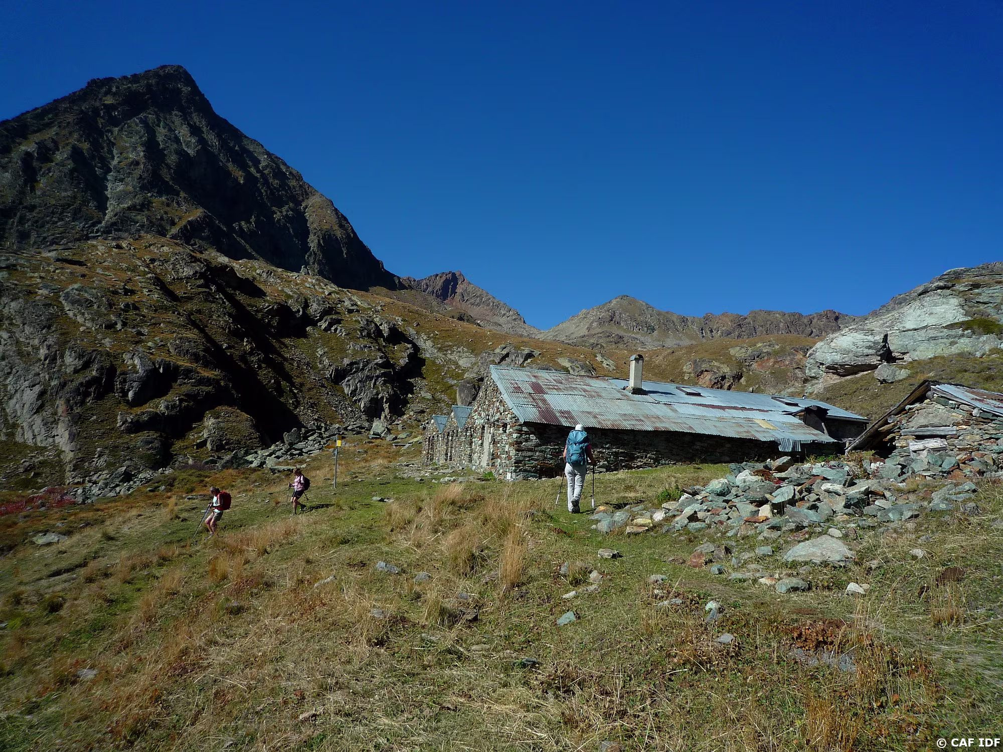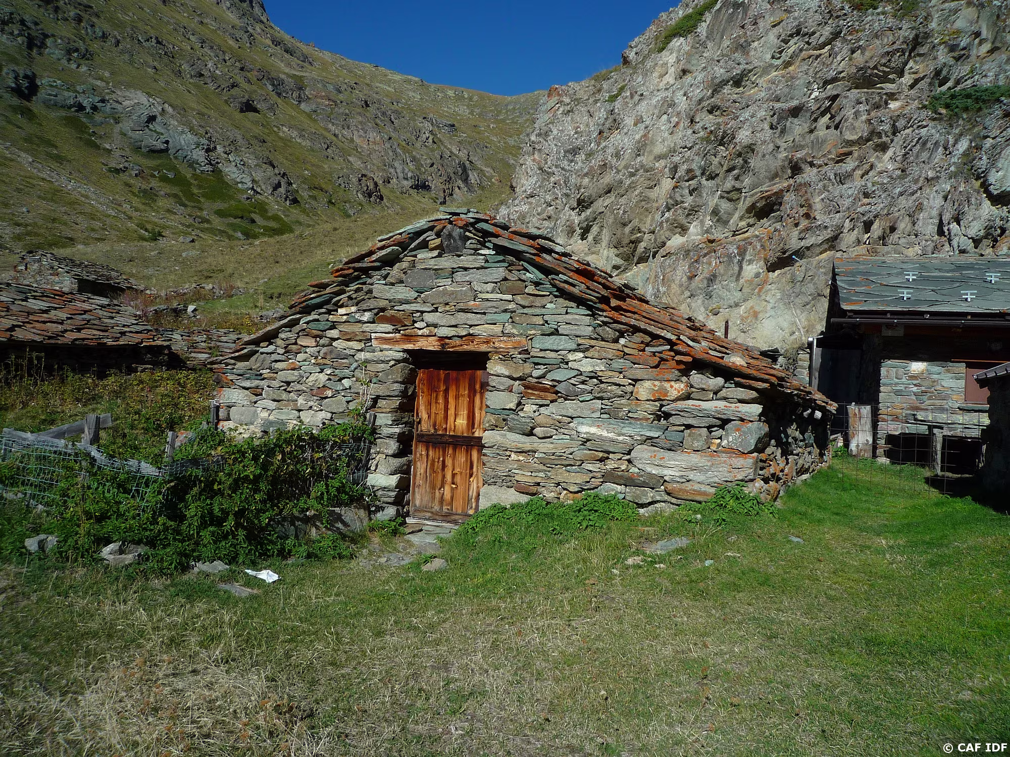 Champs de pierres, en bas, le refuge d'Arbolle