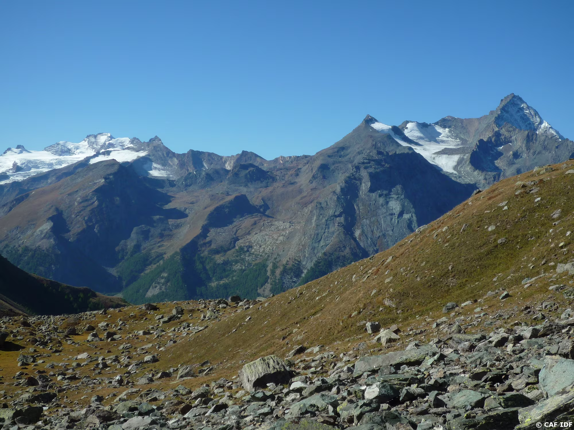 Vue du col Saint Marcel : du Cervin au Mont Rose