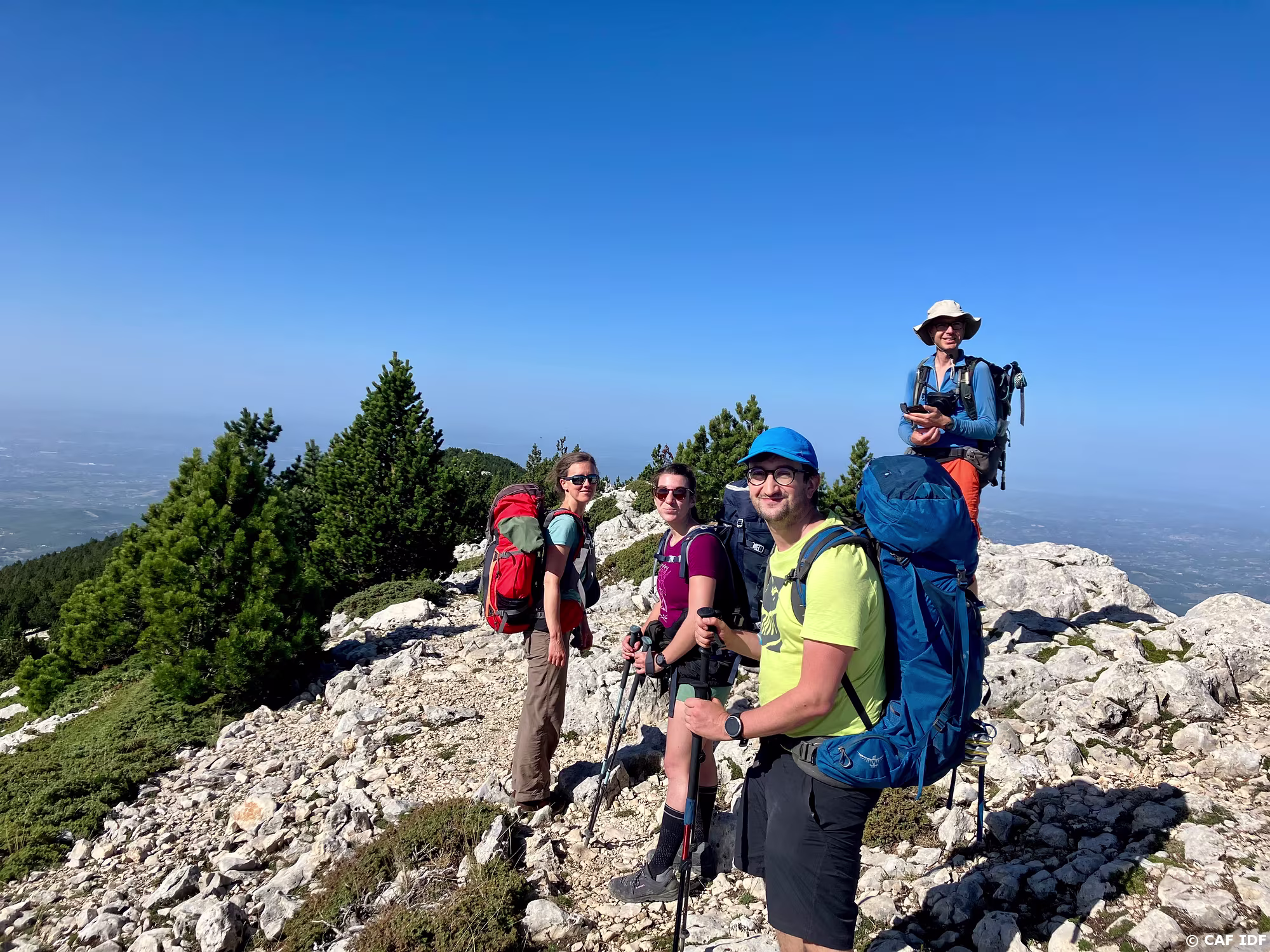 En route pour la descente par l'arête Ouest du Mont-Ventoux en pasant par la Chapelle Sainte-Croix et le Radôme.