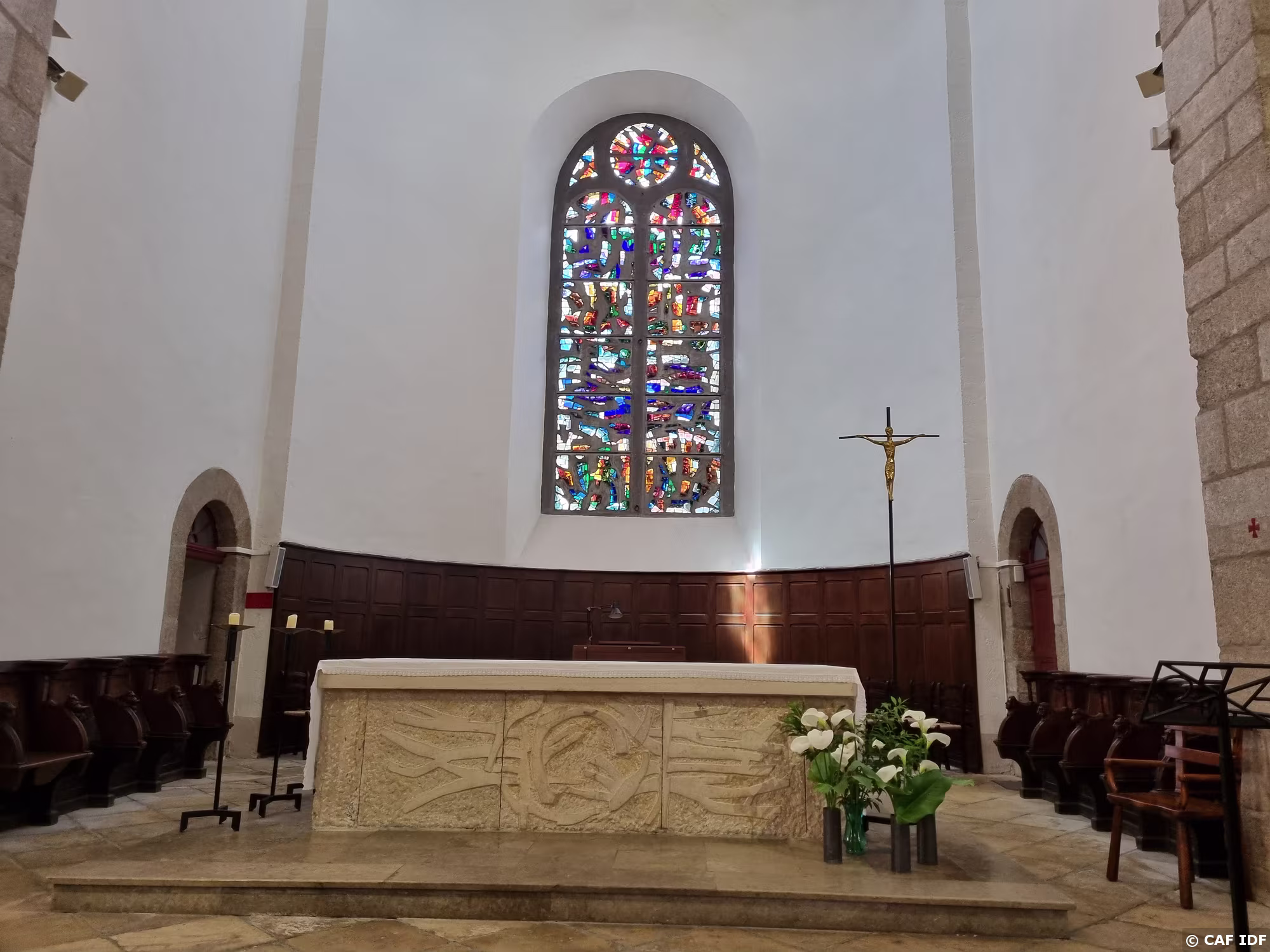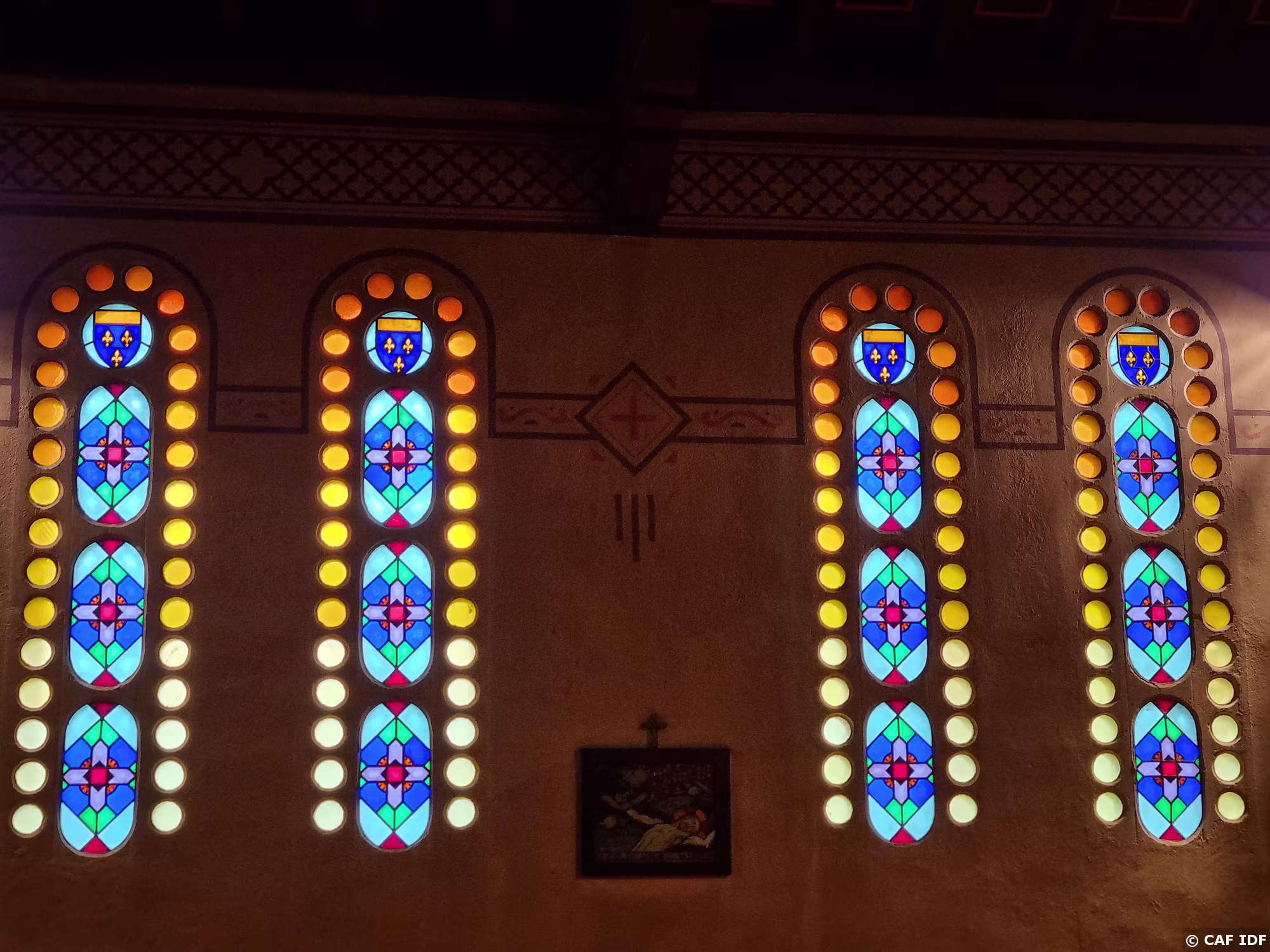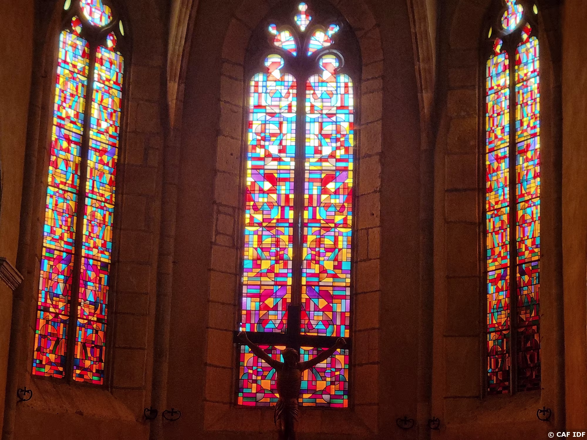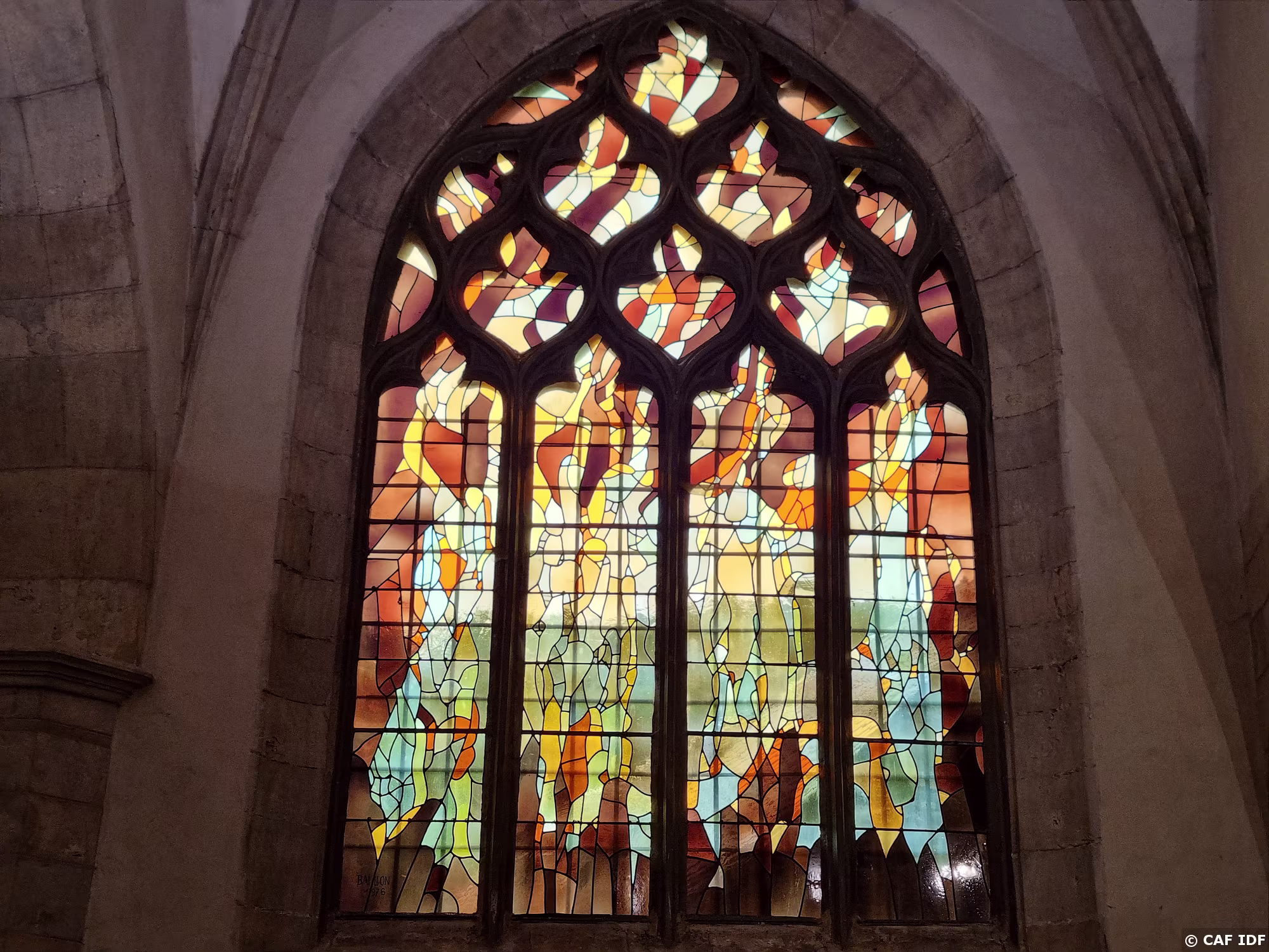 L'élévation orientale est percée de 6 verrières doubles à base de verres noyés dans un réseau de béton