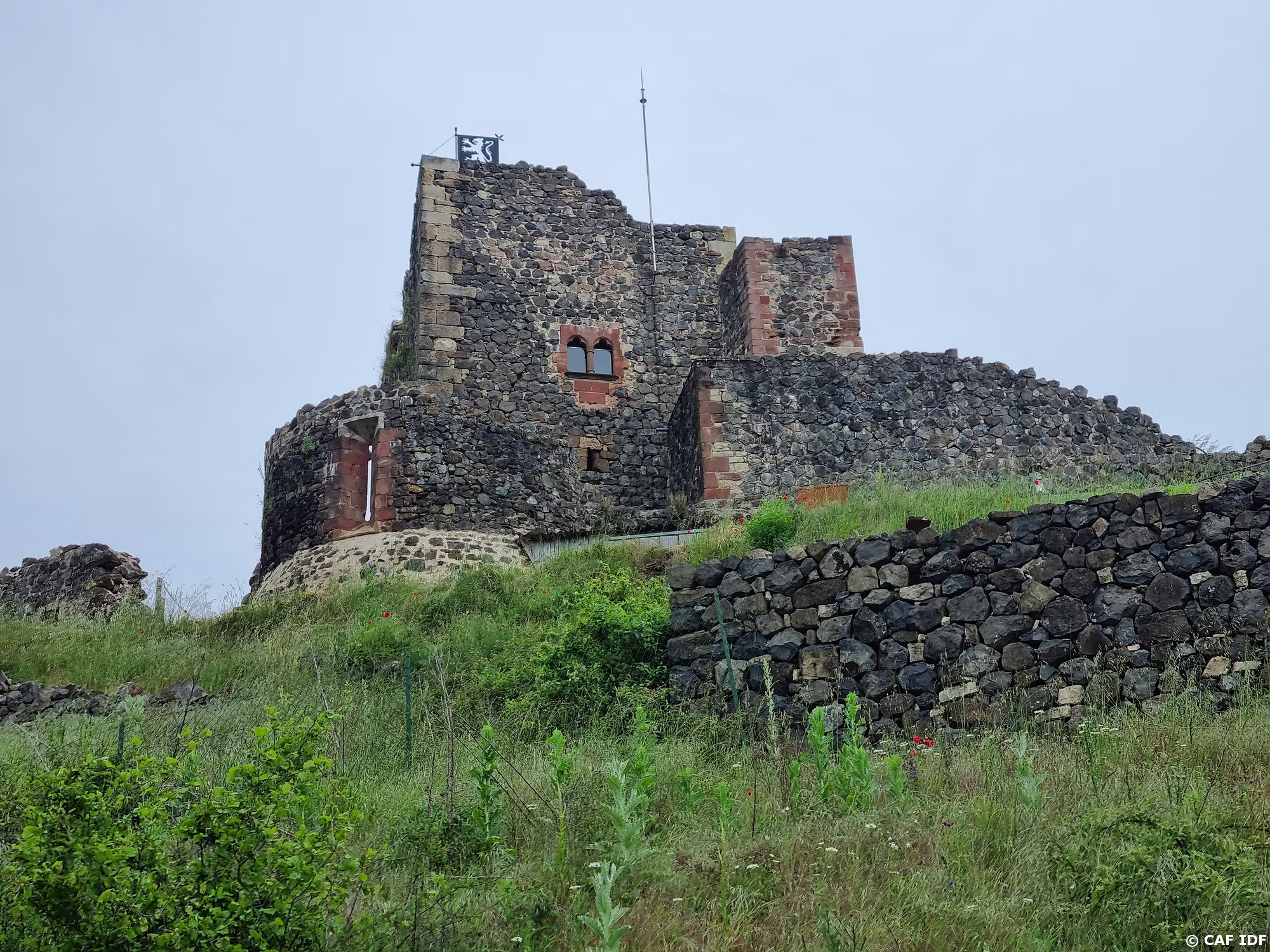 Le château de Calmont d'Olt est perché sur un dyke basaltique à 535 m d'altitude. Il surplombe de 200 m la ville d'Espalion et la vallée du Lot