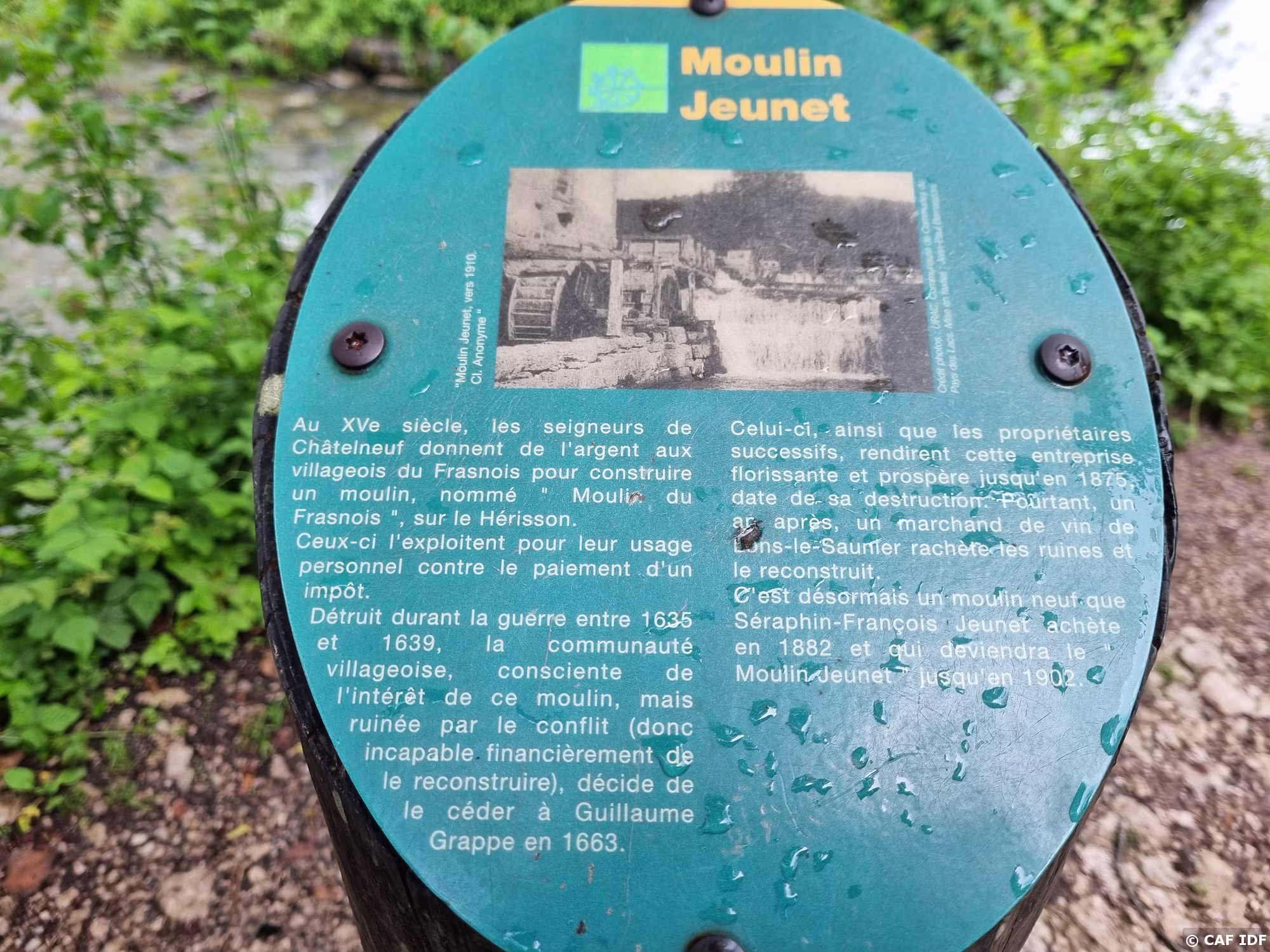 Ruines du moulin Jeunet et la rivière Hérisson qui doit son nom à son origine « Yrisson » qui signifie eau sacrée