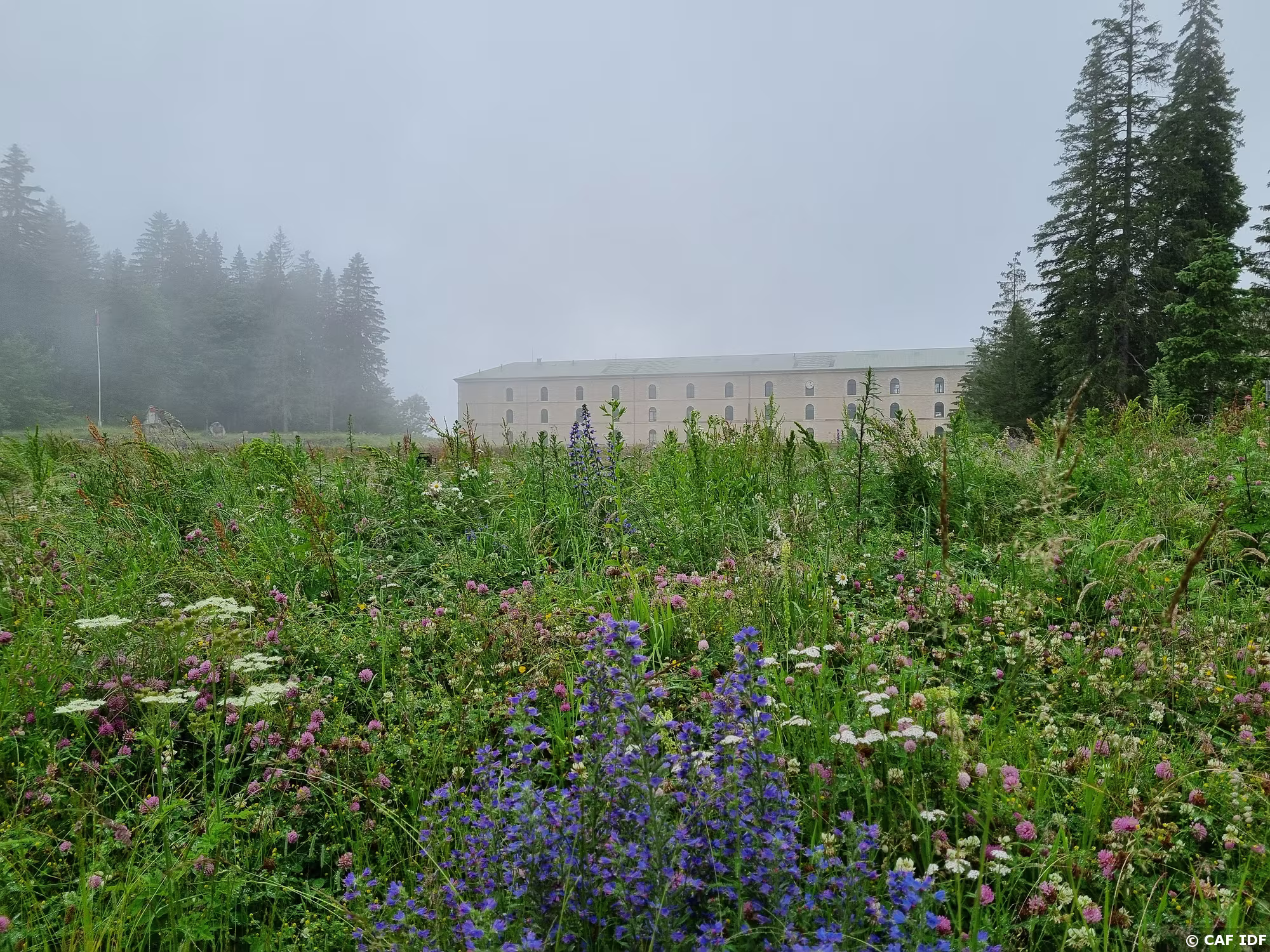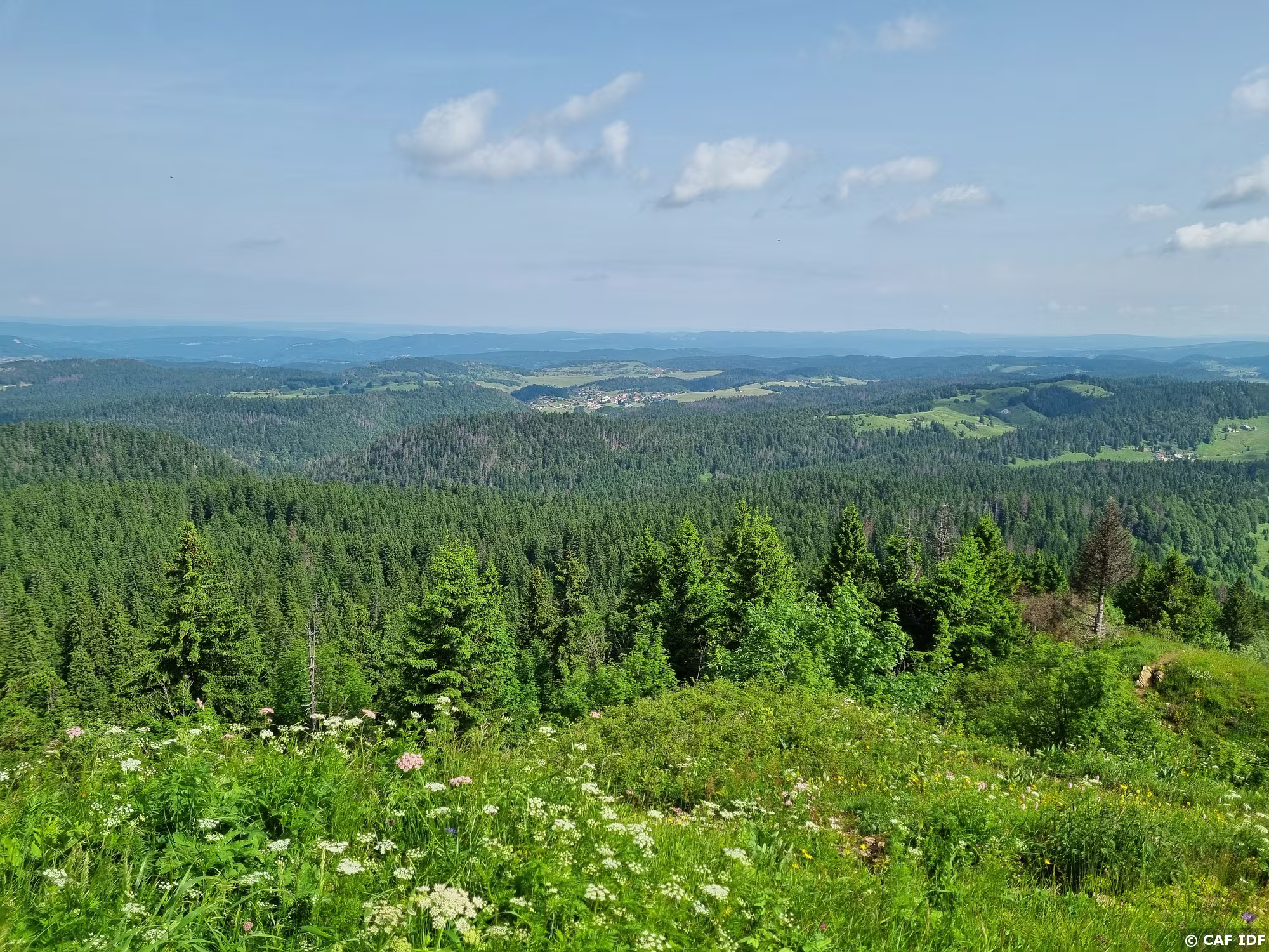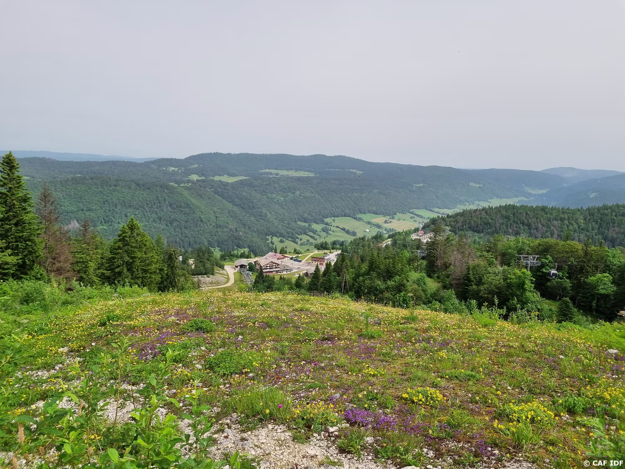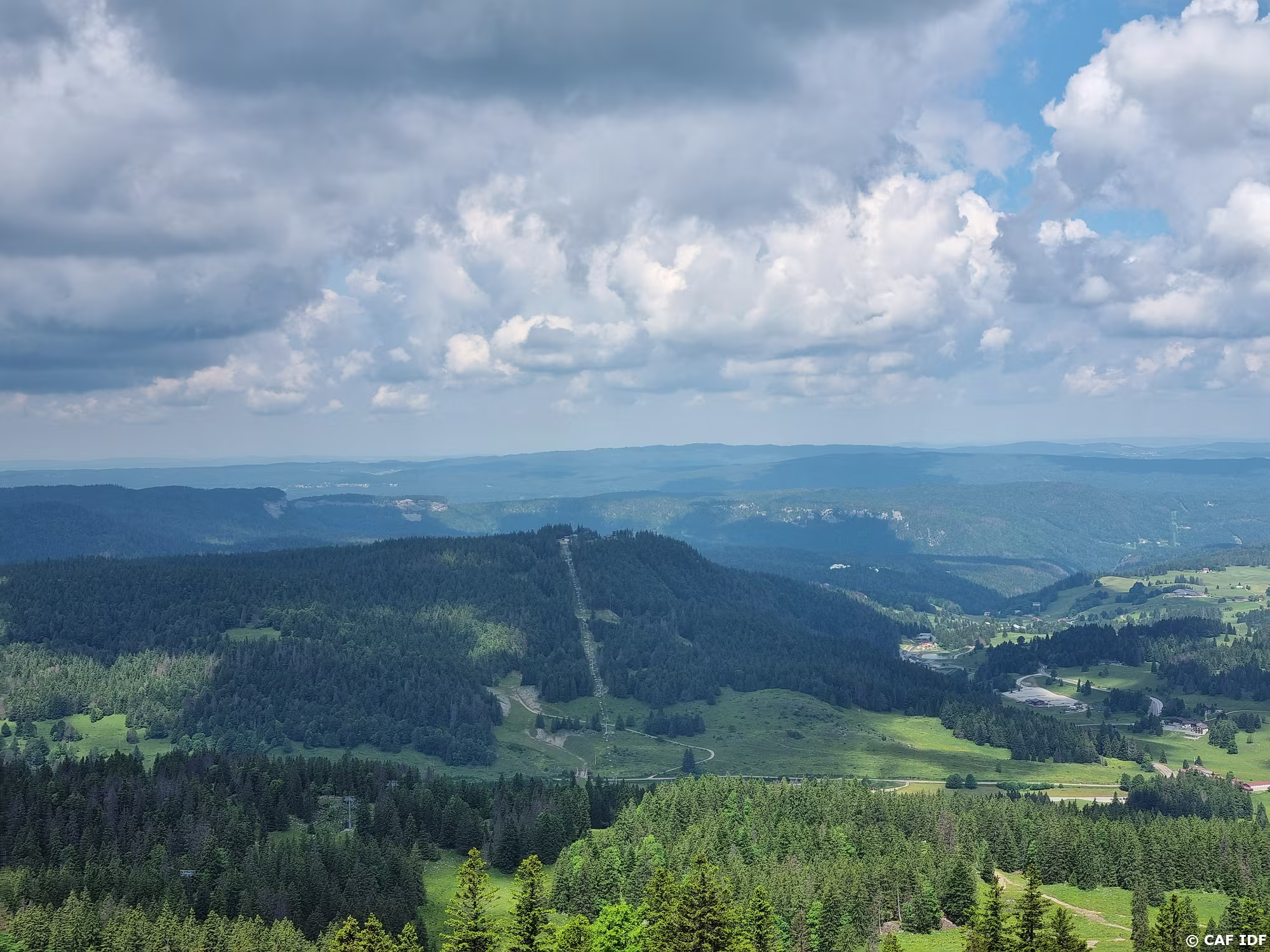 Au fond, le massif du Noirmont dont l'on devine la remontée mécanique et l'une des pistes est à cheval entre la France et la Suisse et culmine à 1540 m. Son…