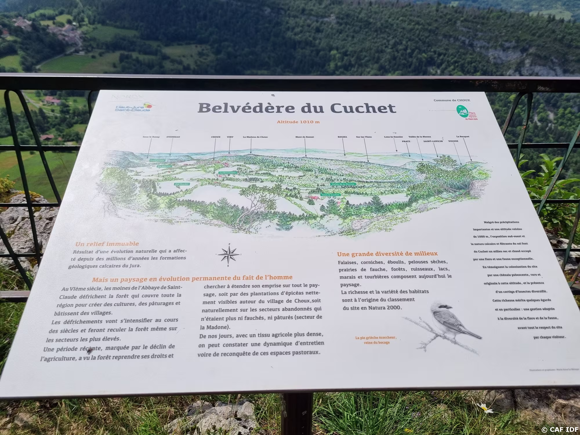 Le belvédère du Cuchet, situé en surplomb du village de Choux (124 habitants appelés les chouliers), offre une vue dégagée sur le village et sa campagne