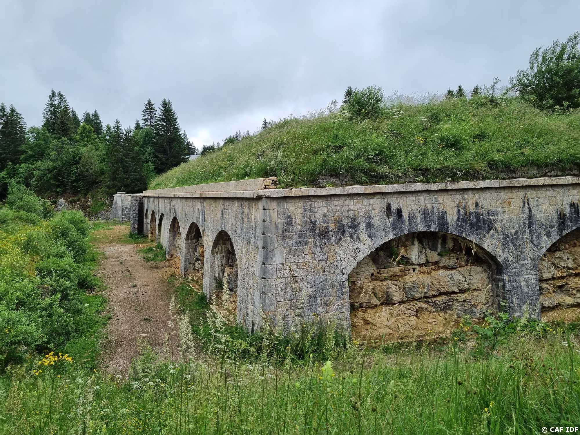 Le Pont de Pierre, construit en 1860, il comprend 6 arches étendues sur 110 m, et il est perché à 30 m au-dessus de la Bienne