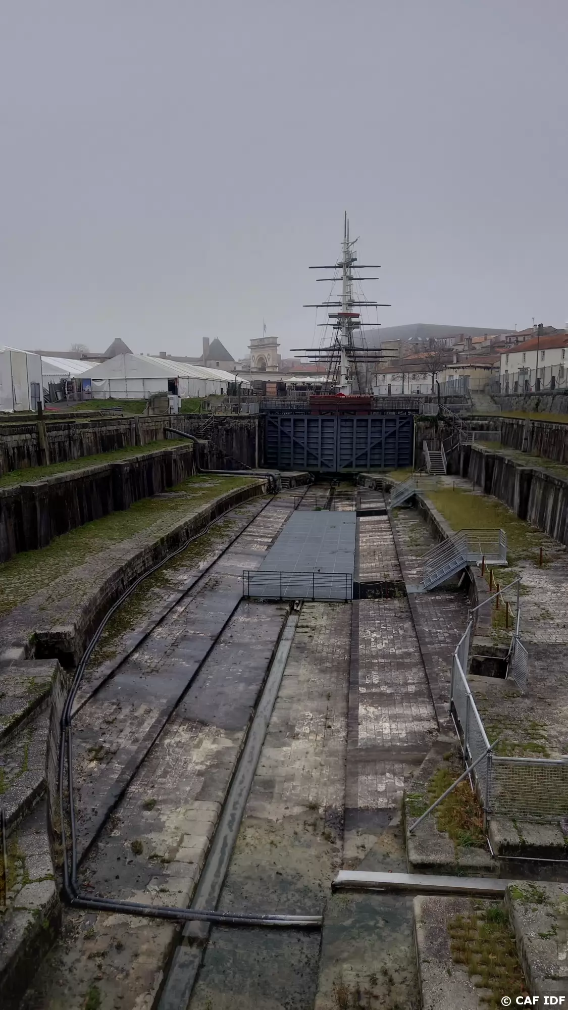 20241228_133726-01 Forme de Radoub Napoléon 3. Derrière la forme, on voit l'accro-mâts, parc aventure et la porte du Soleil.
