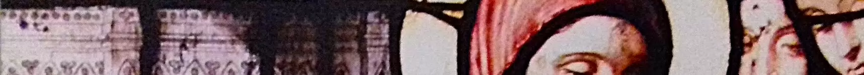 Antependium représentant deux scènes de la vie de Geneviève à Nanterre : à gauche, la rencontre en 430 entre Geneviève et Germain, l’évêque d’Auxerre, et à…