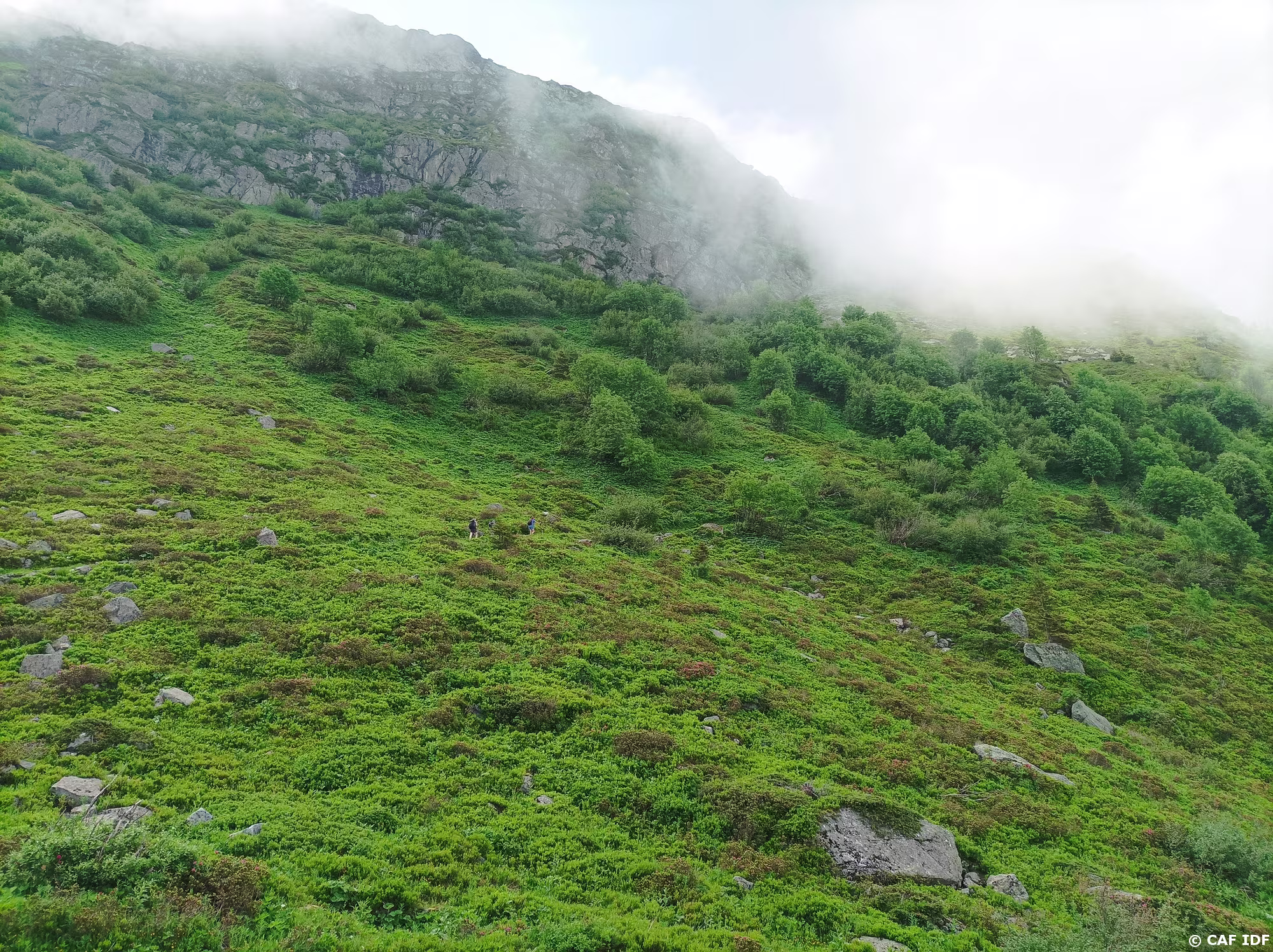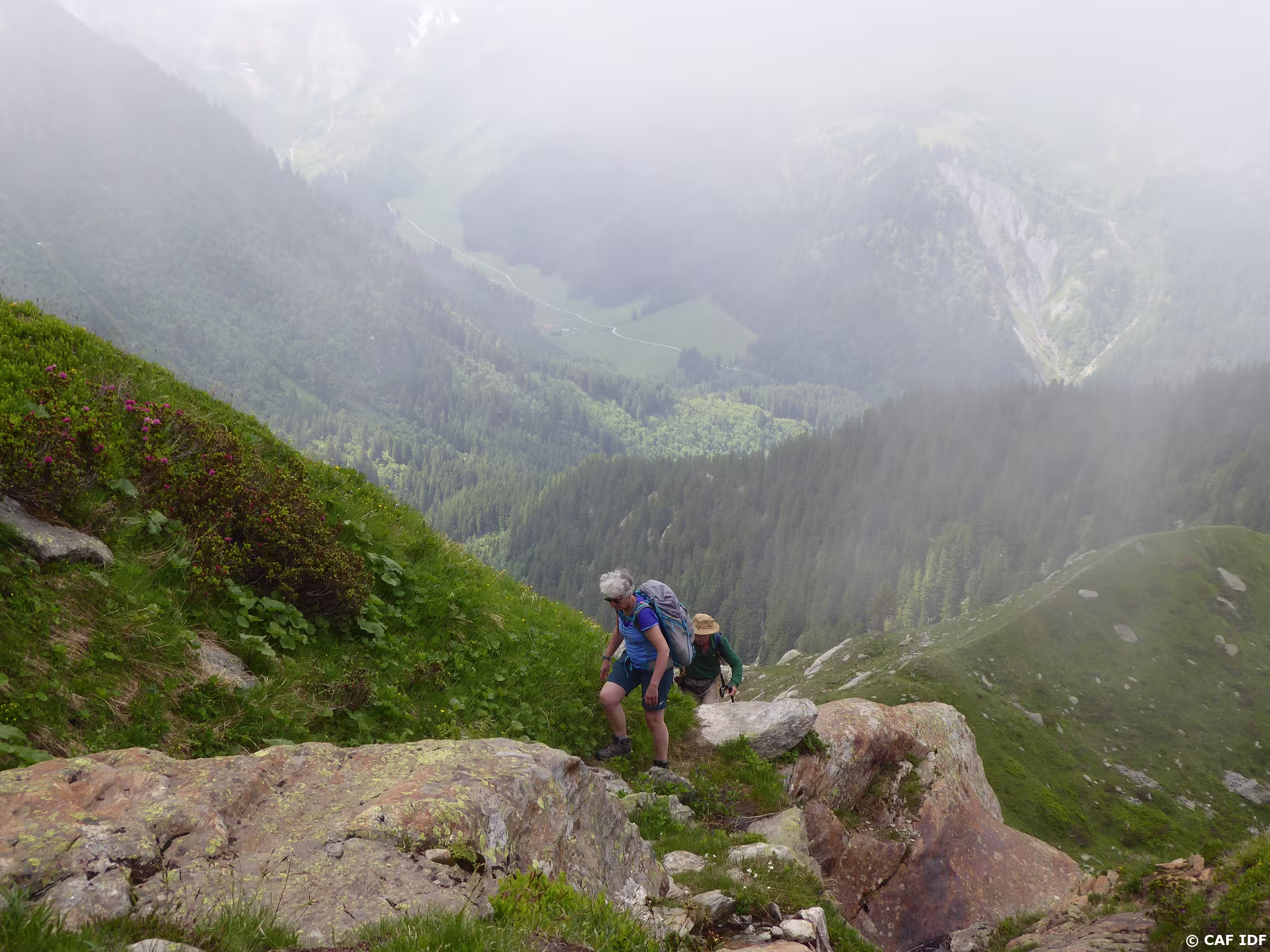 montée dans la brume à Tré la Tête