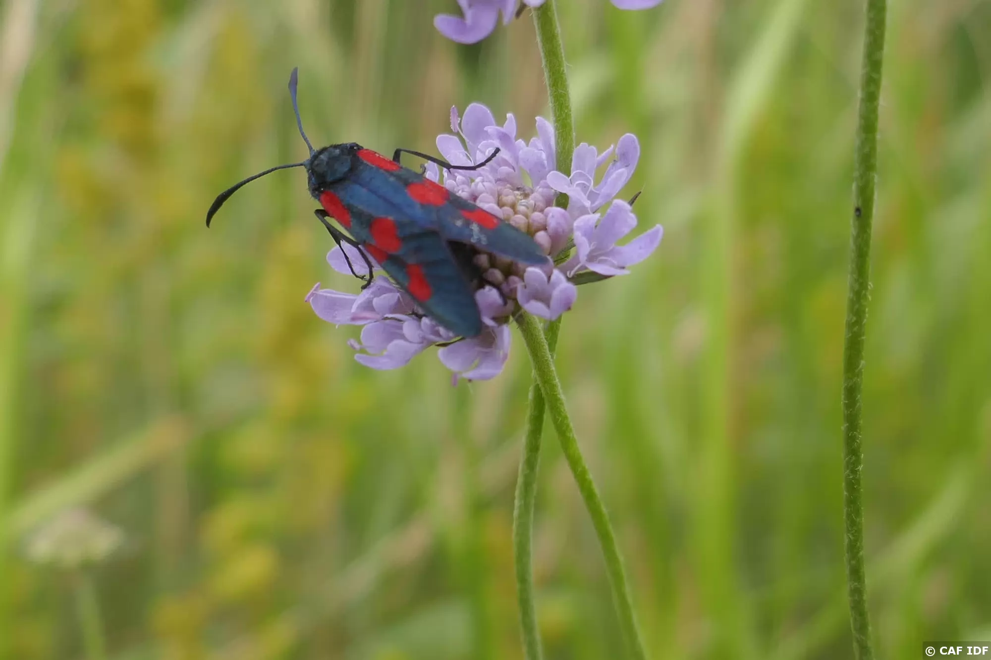 Zygène de la filipendule sur scabieuse des champs.