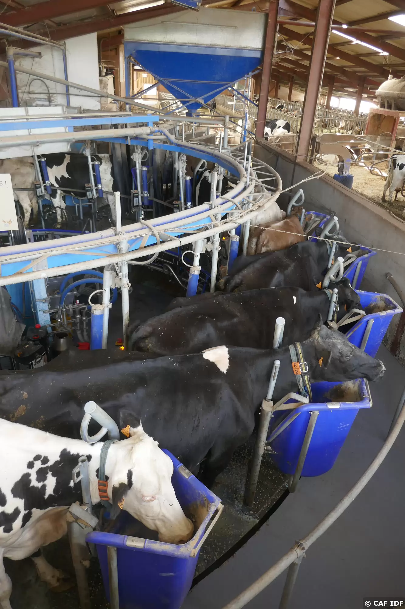 Carroussel pour la traite des vaches à la fermes de l'Oiseau. Les vachez y montent toutes seules.