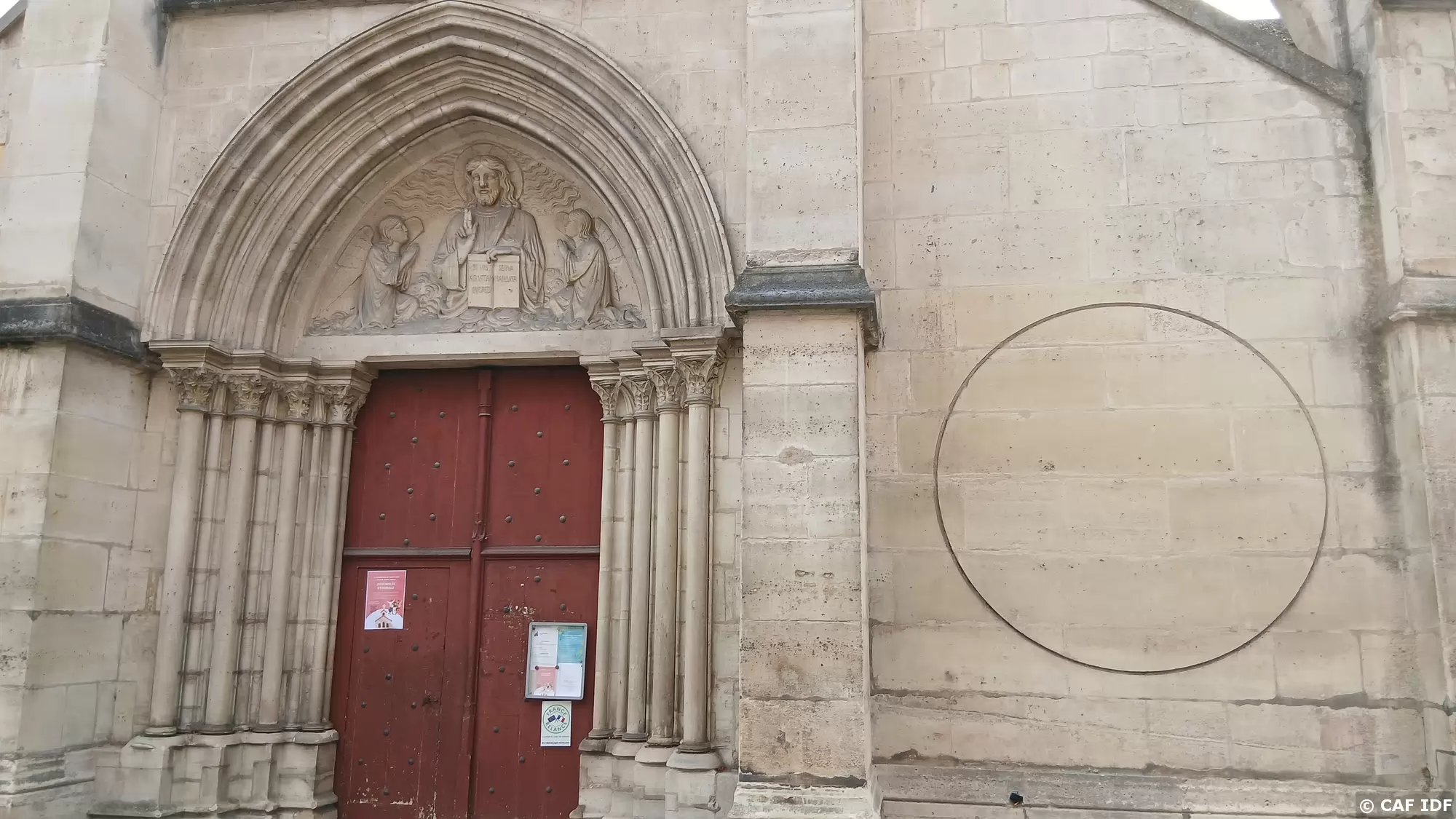 Le tympan gothique de l’église Saint Denys d’Arcueil a été sculpté au XIXème siècle. Le cercle, gravé sur la façade en 1601 par un habitant d’Arcueil à son…
