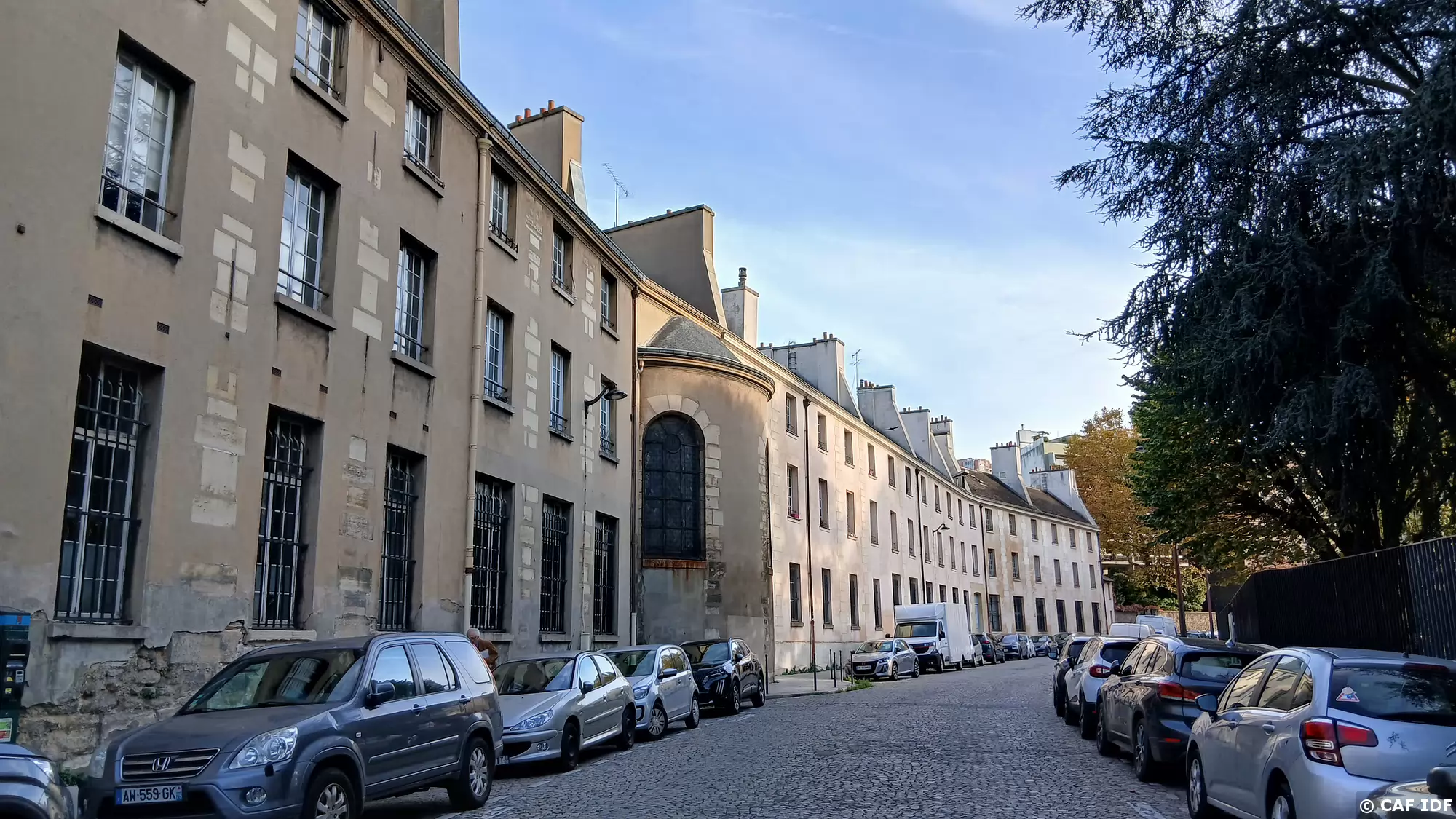 L’arrière de la manufacture des Gobelins avec sa chapelle (rue Berbier de Mets). Autrefois appelée ruelle des Gobelins, cette rue correspond à l’ancien lit de…