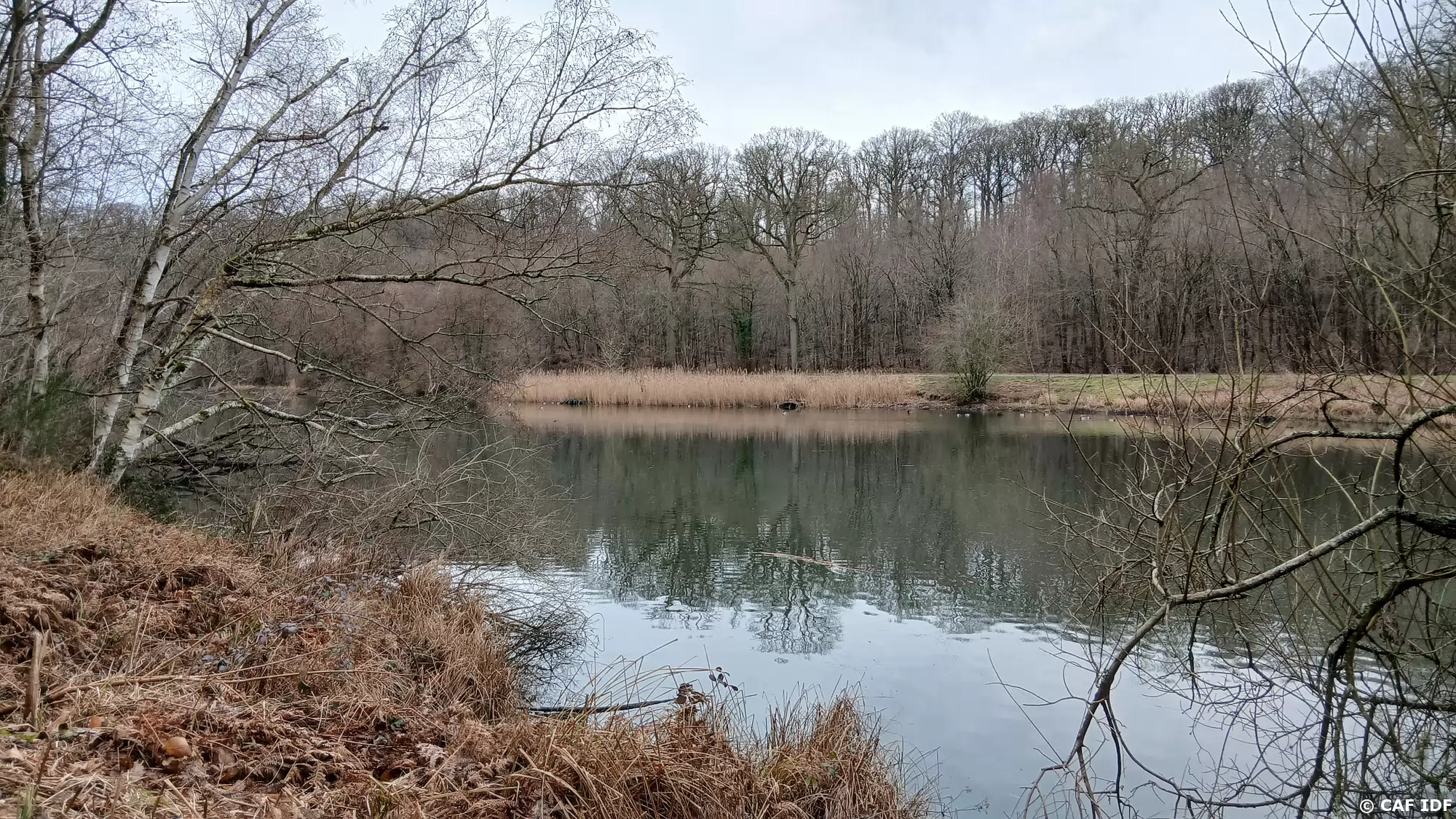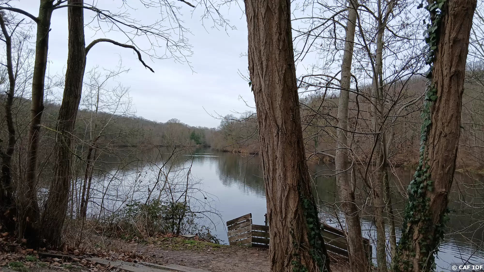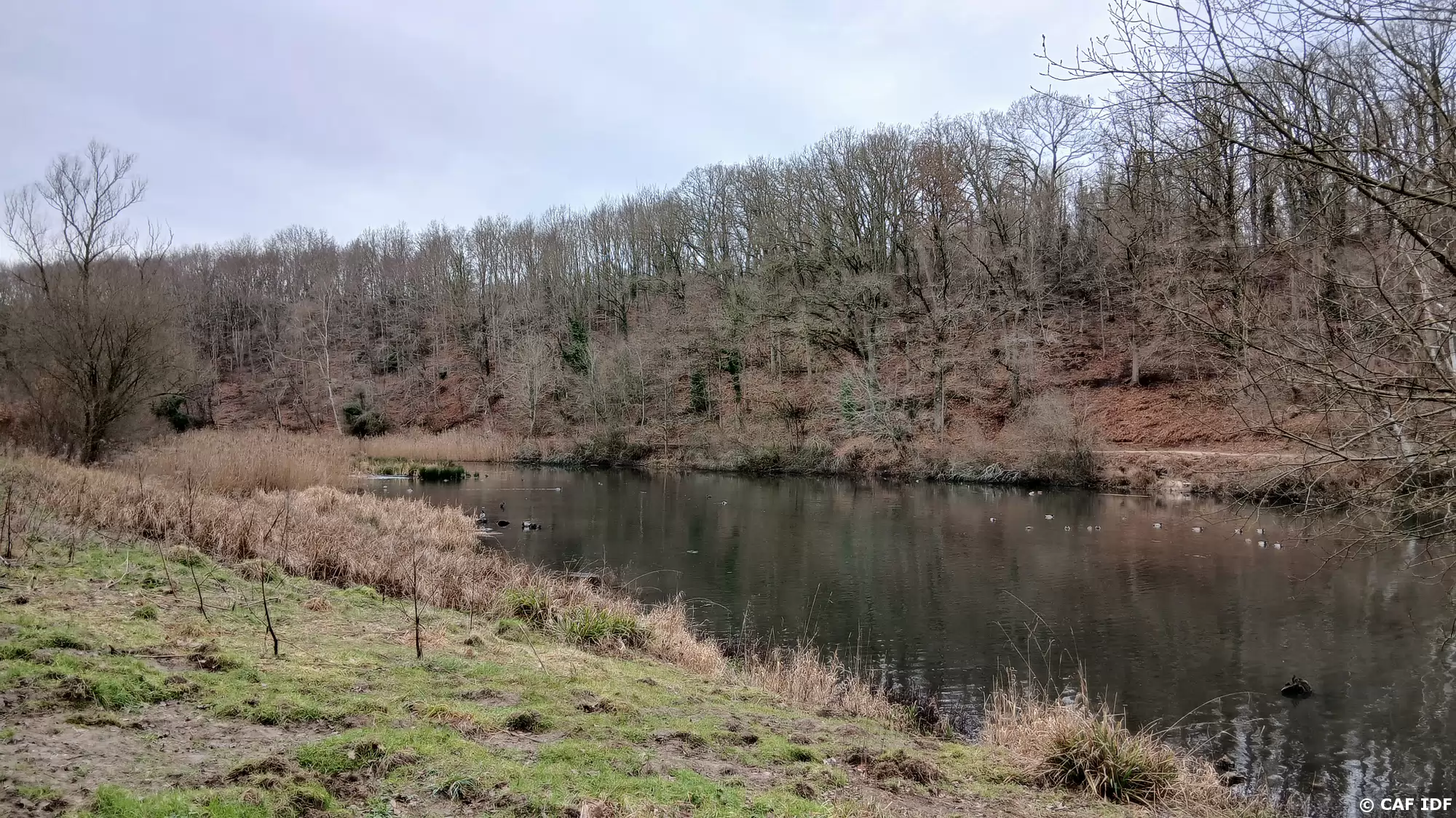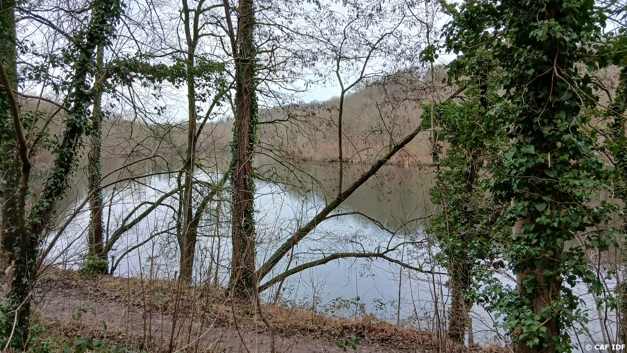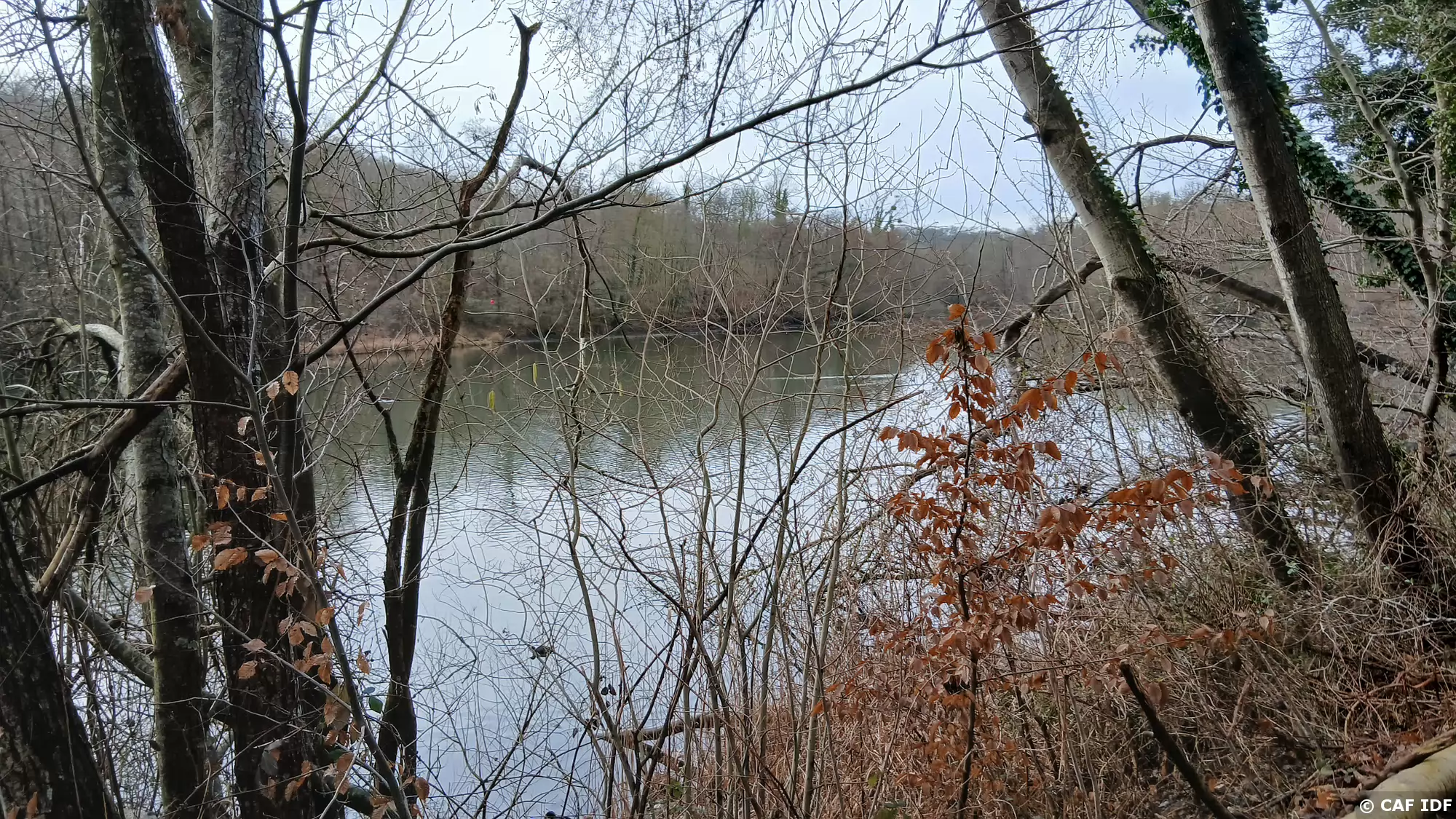 L’étang du Val d’Or vu depuis la route des Sources (de la Bièvre) sur la rive sud