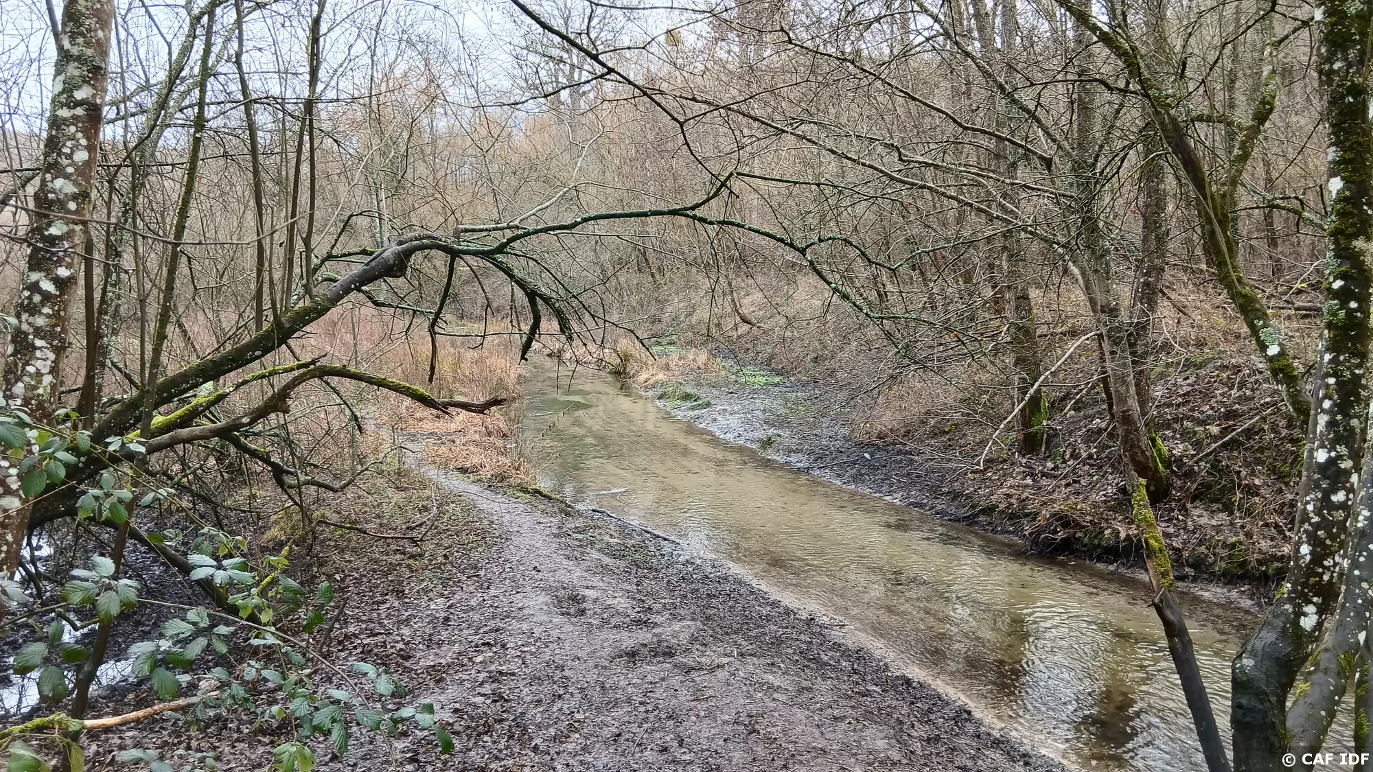 La route forestière de la Fontaine blanche longe le ru du Bois Robert