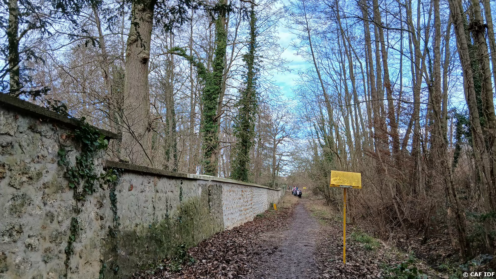 A l’extérieur du parc, le chemin longe le mur d’enceinte. Le gazoduc souterrain achemine vers Paris le gaz naturel provenant du stockage de Beynes
