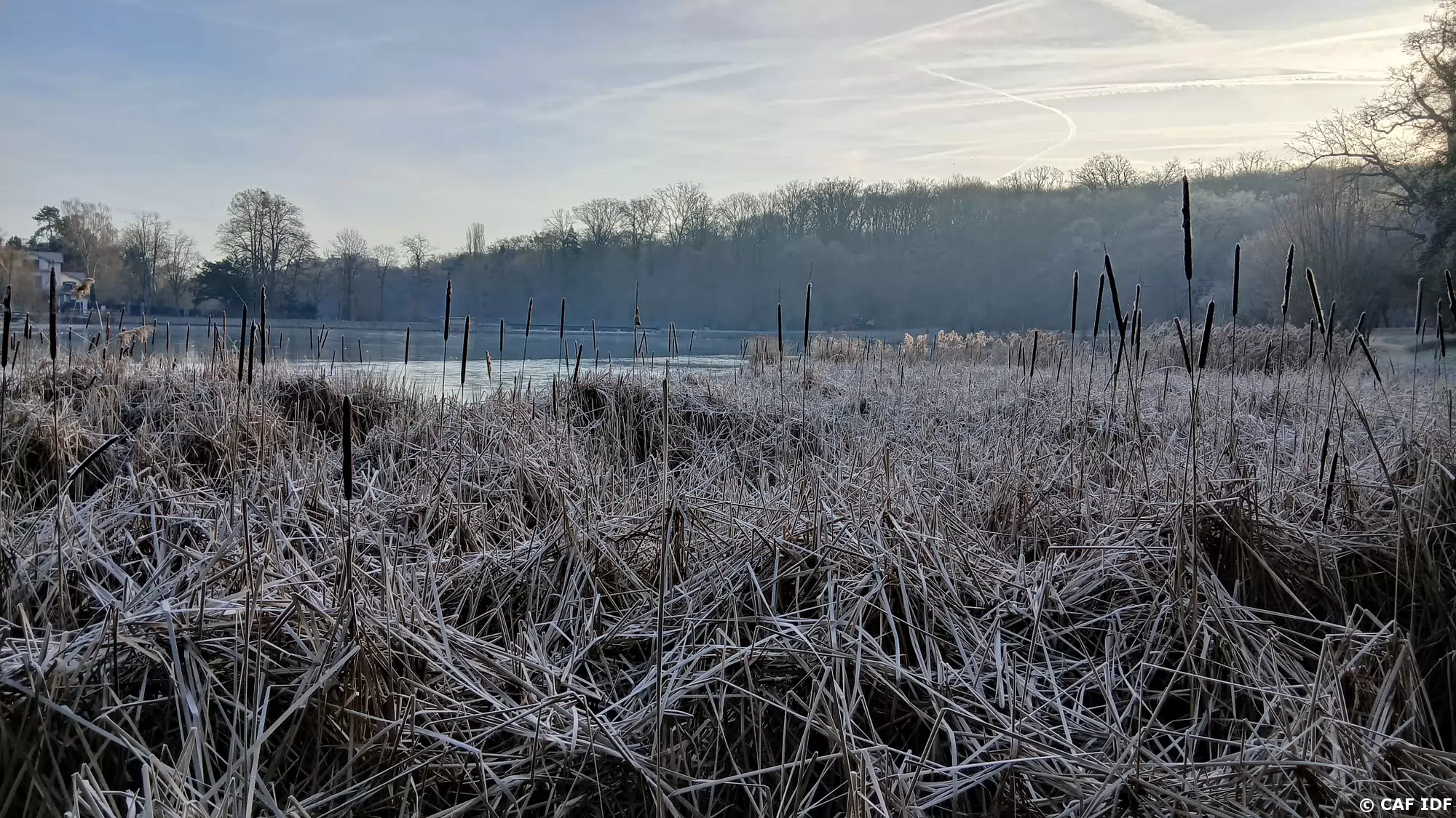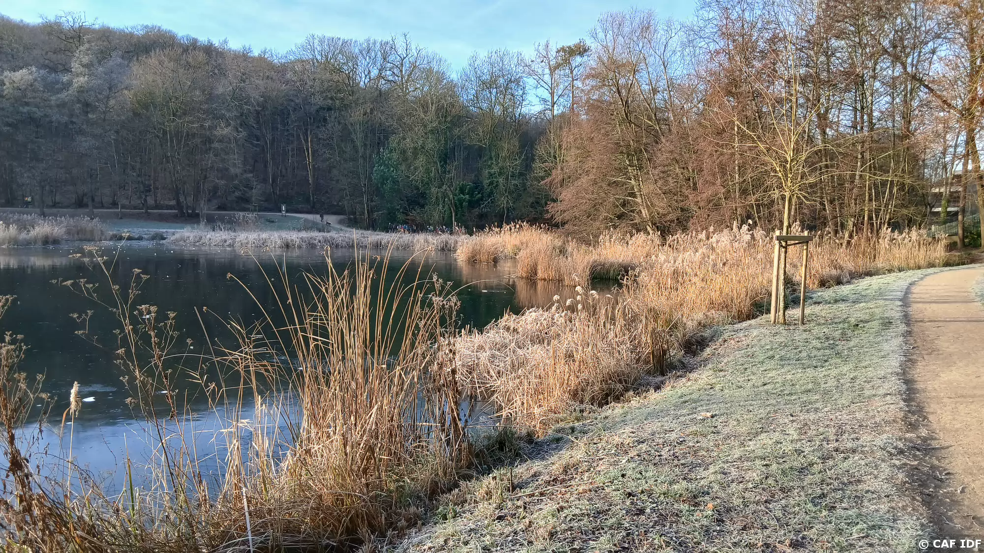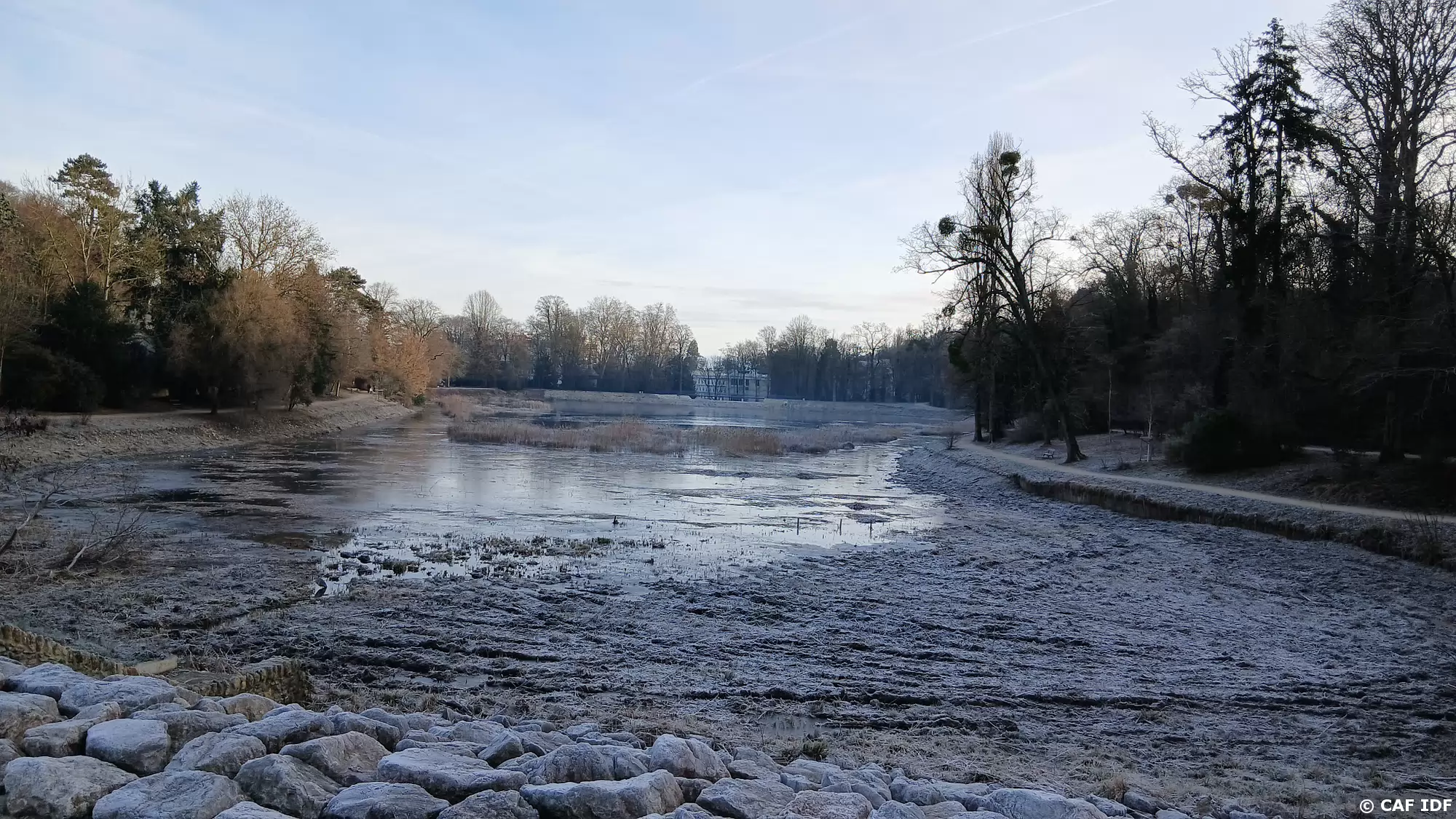 L’Etang Neuf vu de la digue. Il a été aménagé en 1690 par Philippe d’Orléans, frère de Louis XIV, pour l’alimentation en eau de son domaine de Saint-Cloud.
