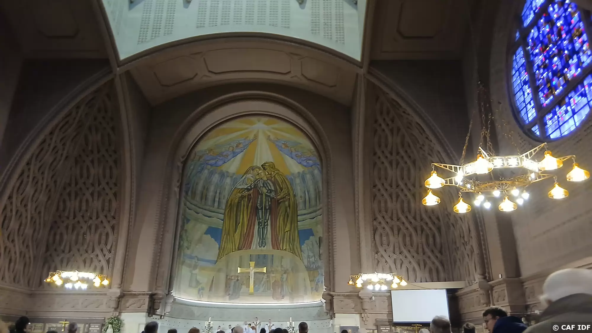 La voute du chœur est décorée d’une peinture représentant Jeanne d’Arc entourée de l’archange saint Michel, de sainte Catherine, et de sainte Marguerite
