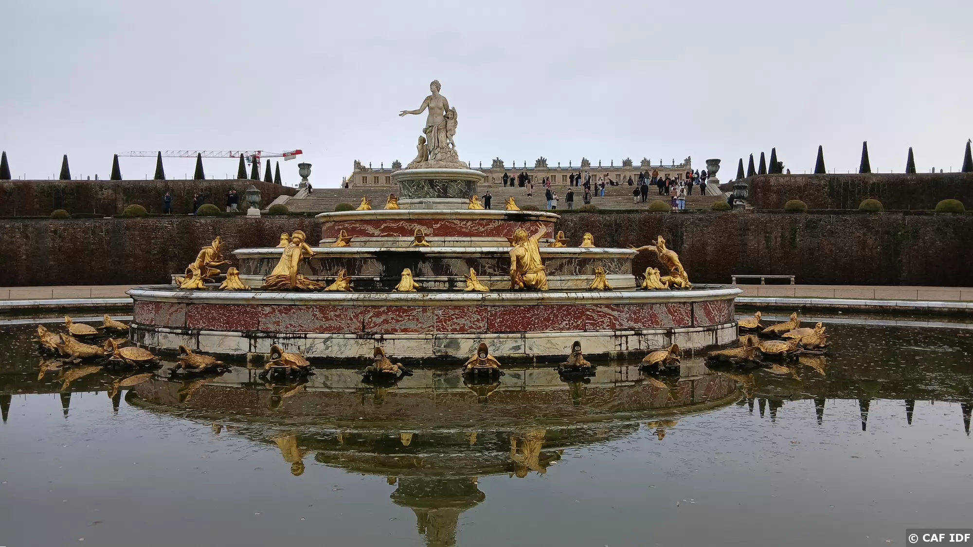 Le Grand Trianon (1687), œuvre de Jules Hardouin-Mansart, édifié sous le règne du roi Louis XIV à l’extrémité du bras nord du Grand Canal