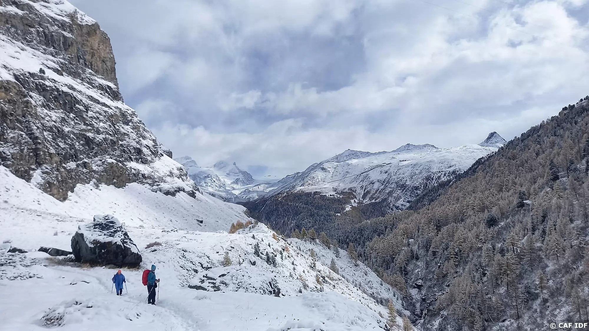 Vers 1900 m, la pluie se transforme en neige.