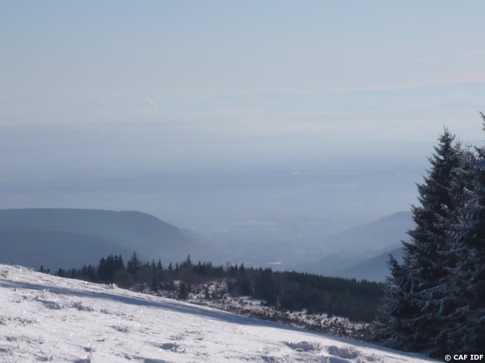 Depuis le crête du petit Ballon, vue vers les Alpes suisses (bon courage pour reconnaître les sommets !)