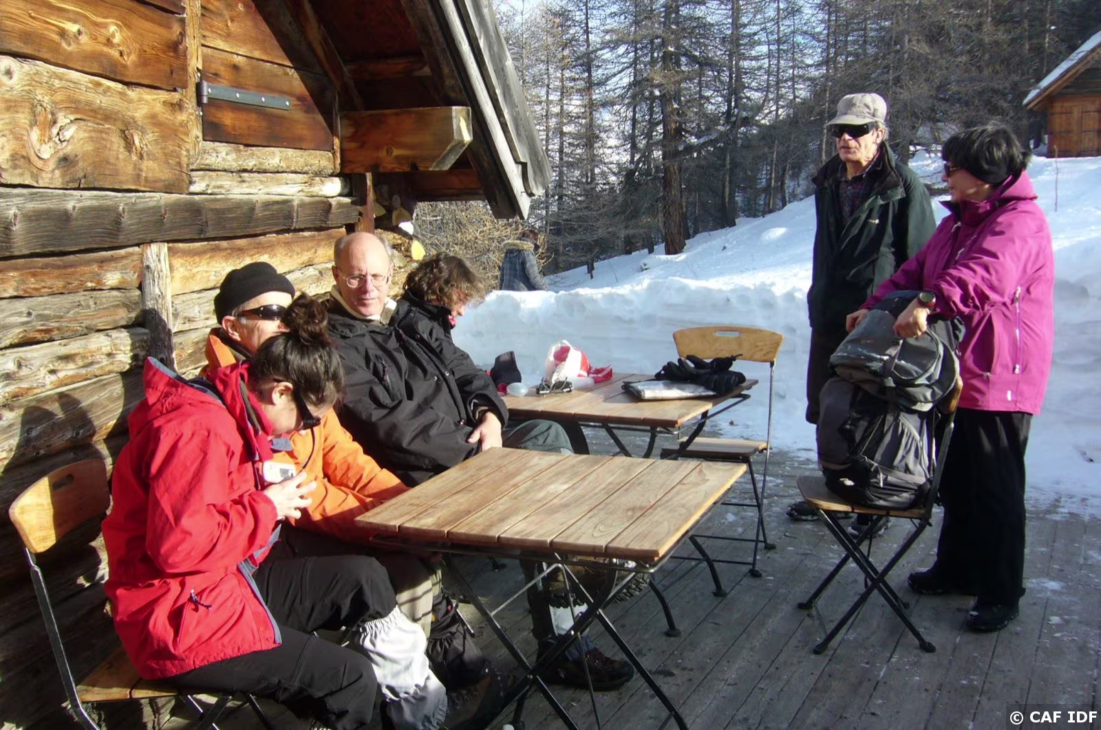 Arrivée sur la terrasse ensoleillée du refuge de Buffère où nous prenons notre premier déjeuner avant de repartir pour l'après-midi. Clémence, Pierre, Eric,…