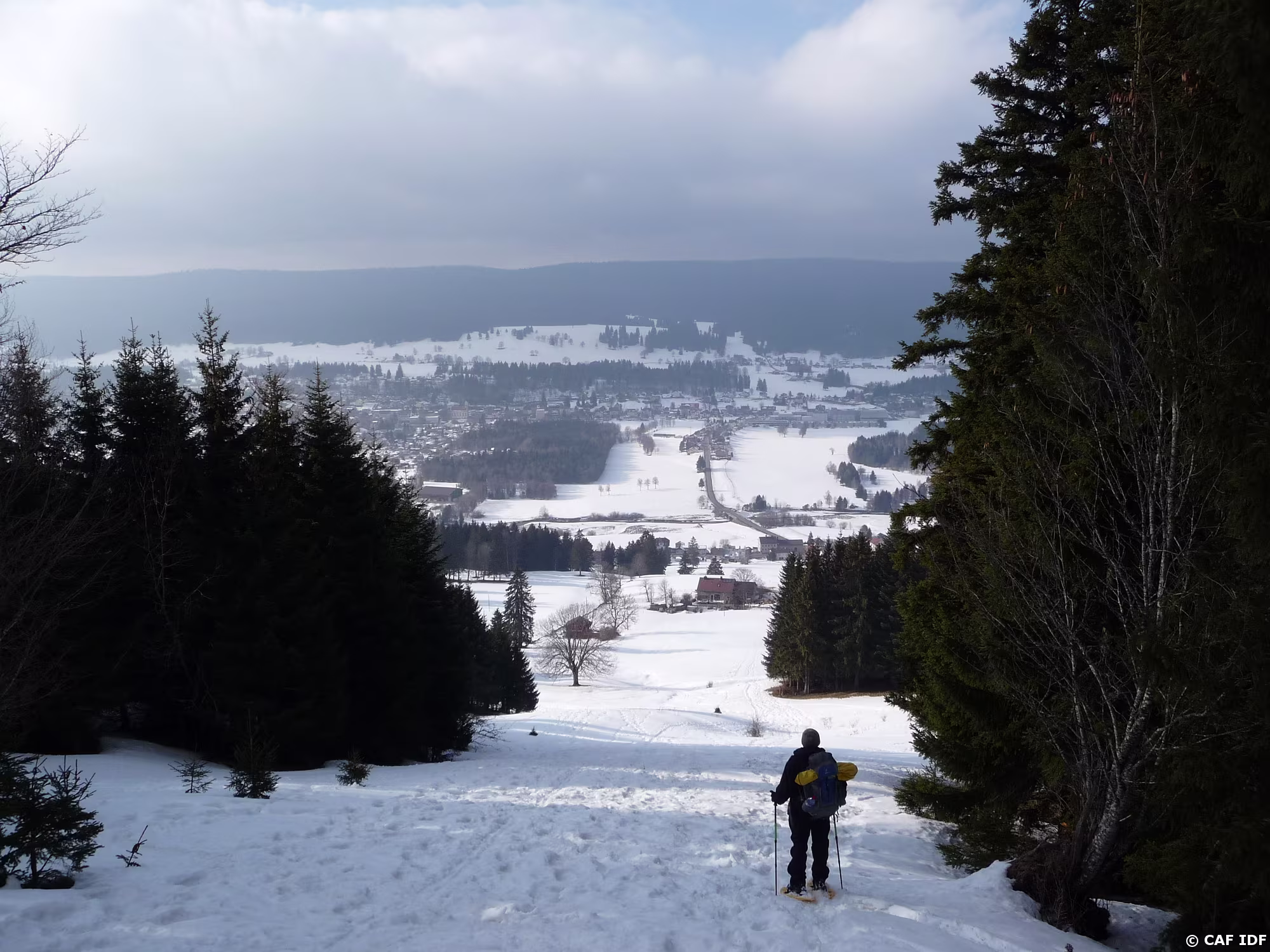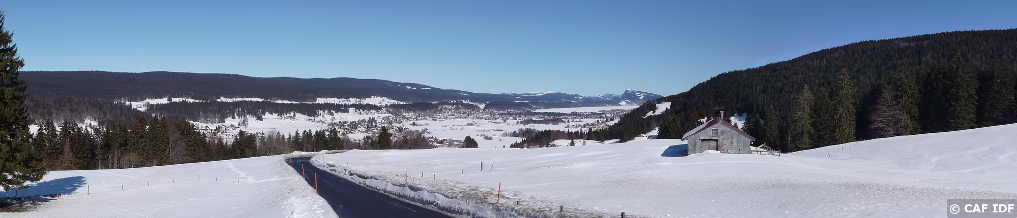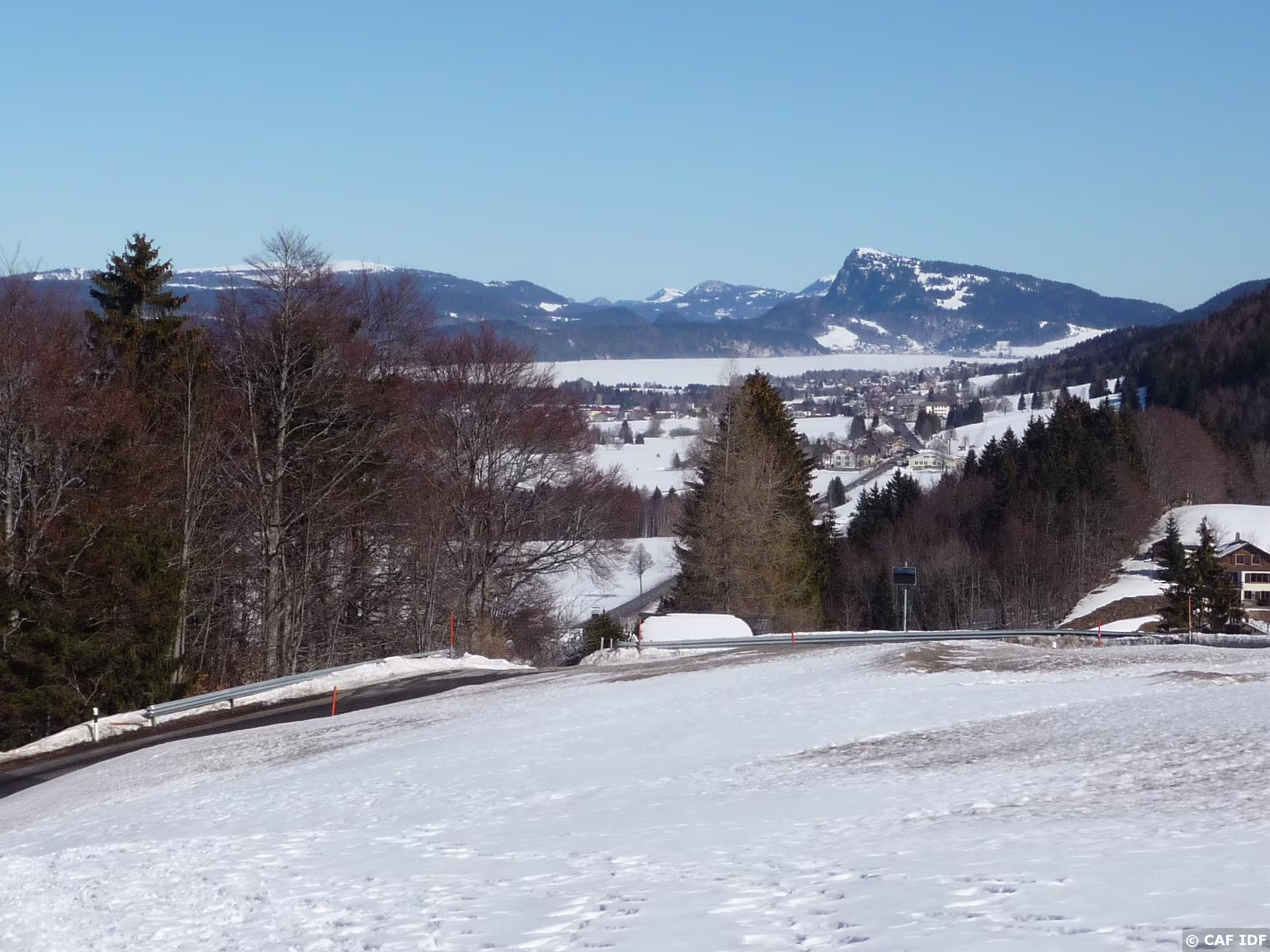 Vue sur Le Sentier et le lac de Joux gelé
