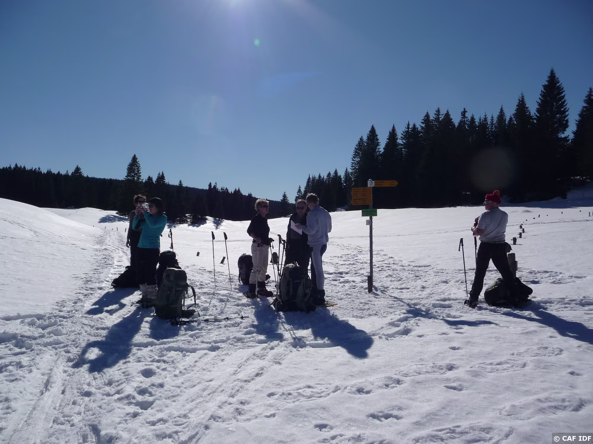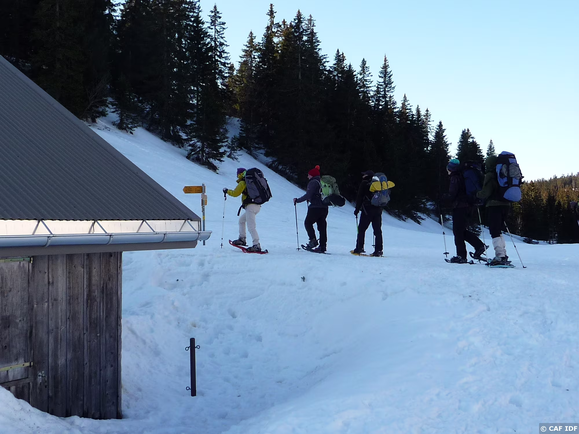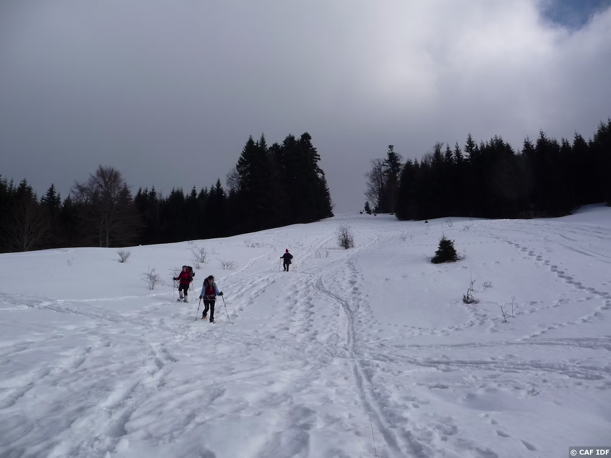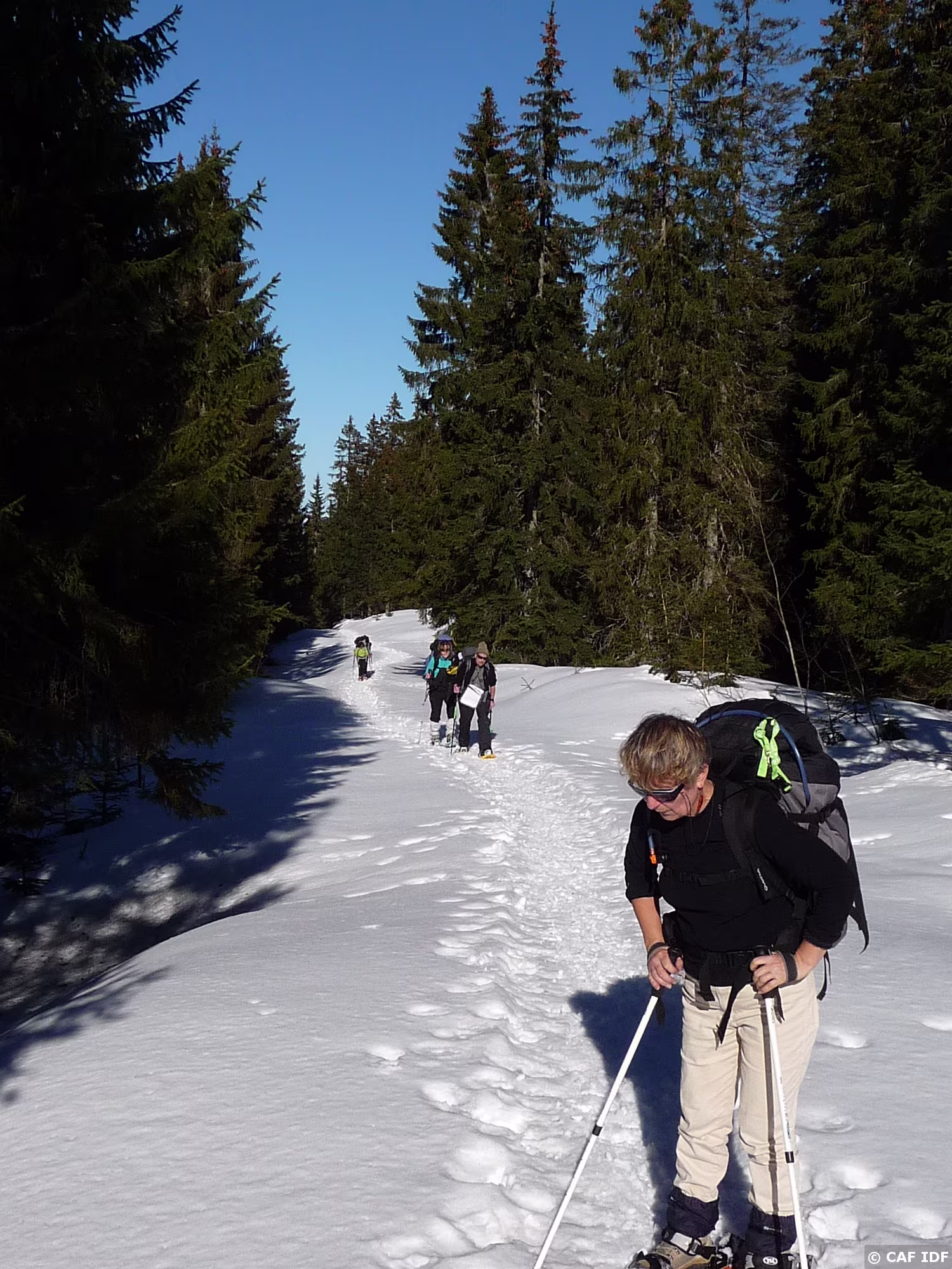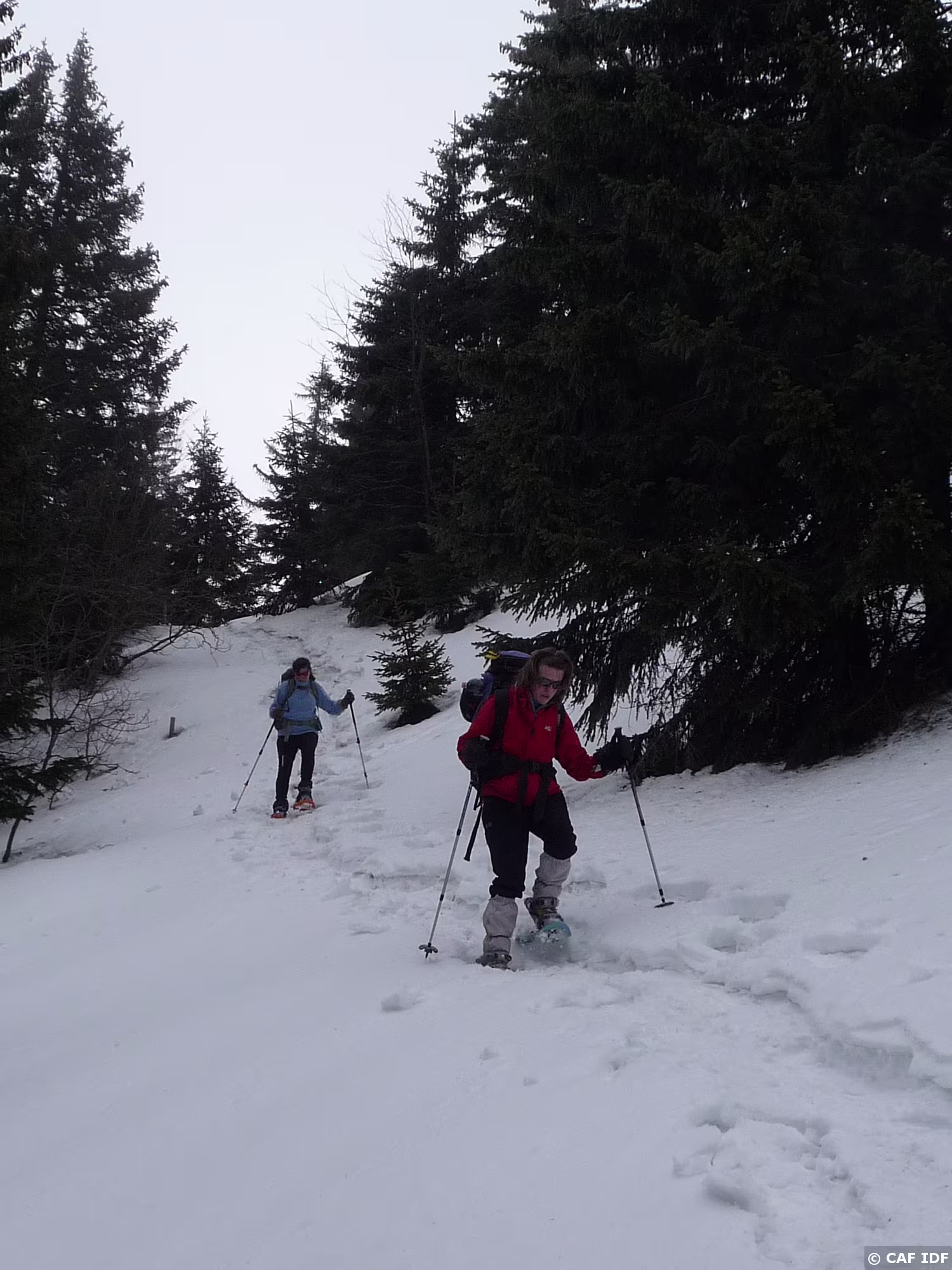 Tiens des marches à descendre, pas facile avec des raqettes