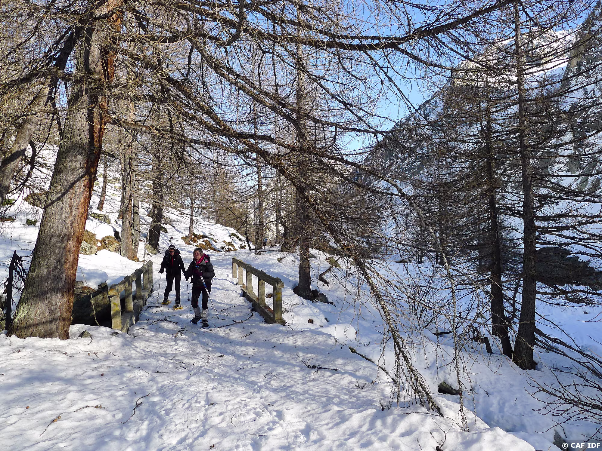 Ciel bleu et neige bleutée.