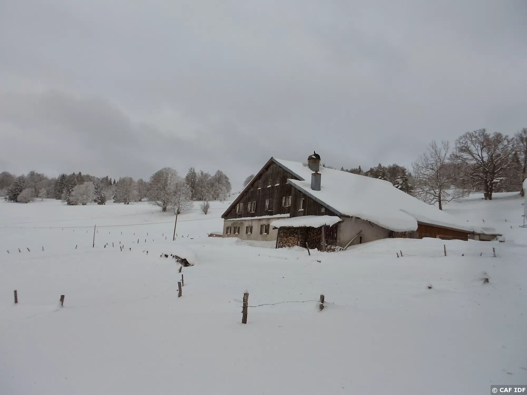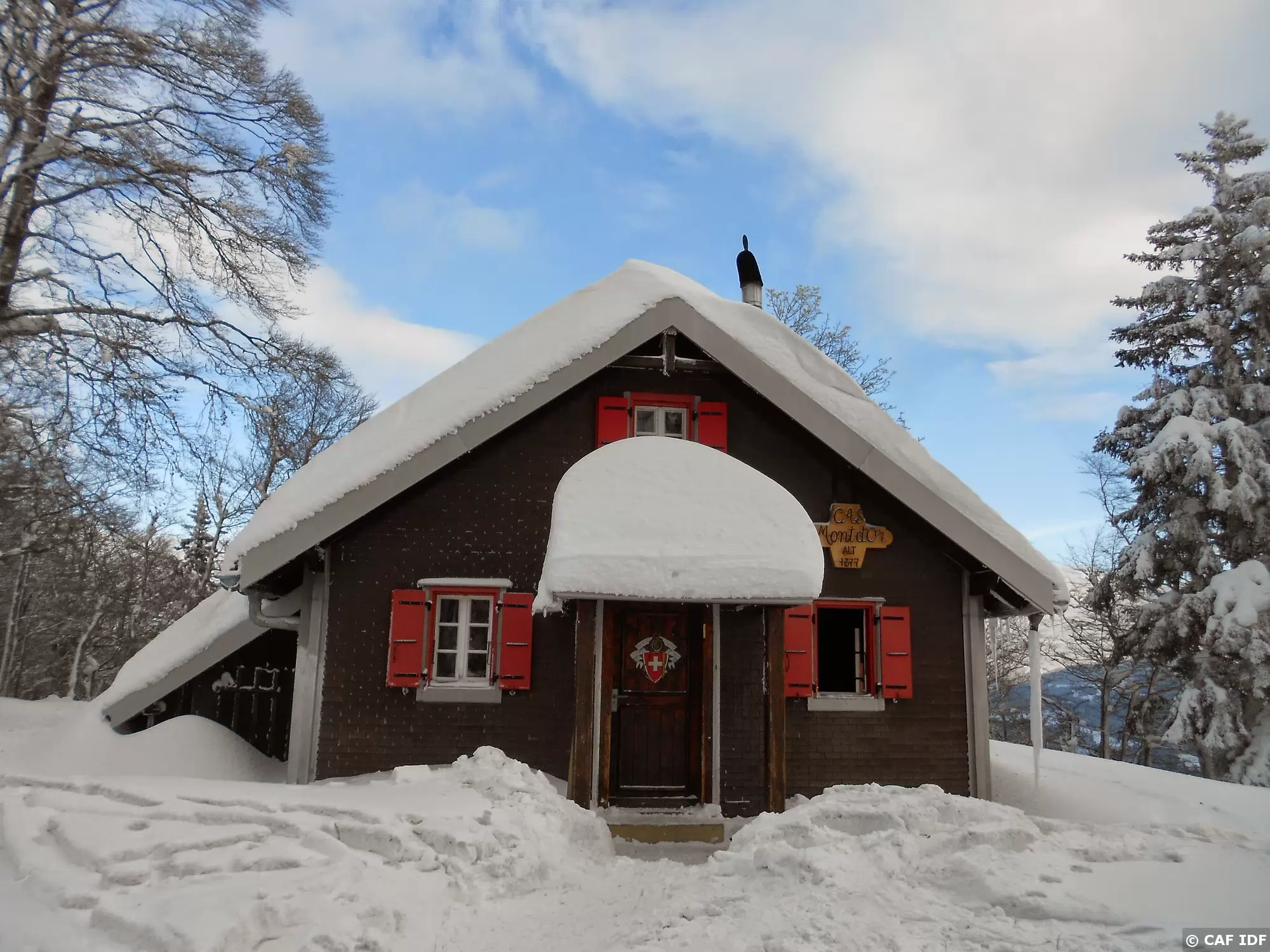 La Cabane du Mont d'Or (alt. 1377 m.), refuge du Club Alpin Suisse enveloppé par les stratus.