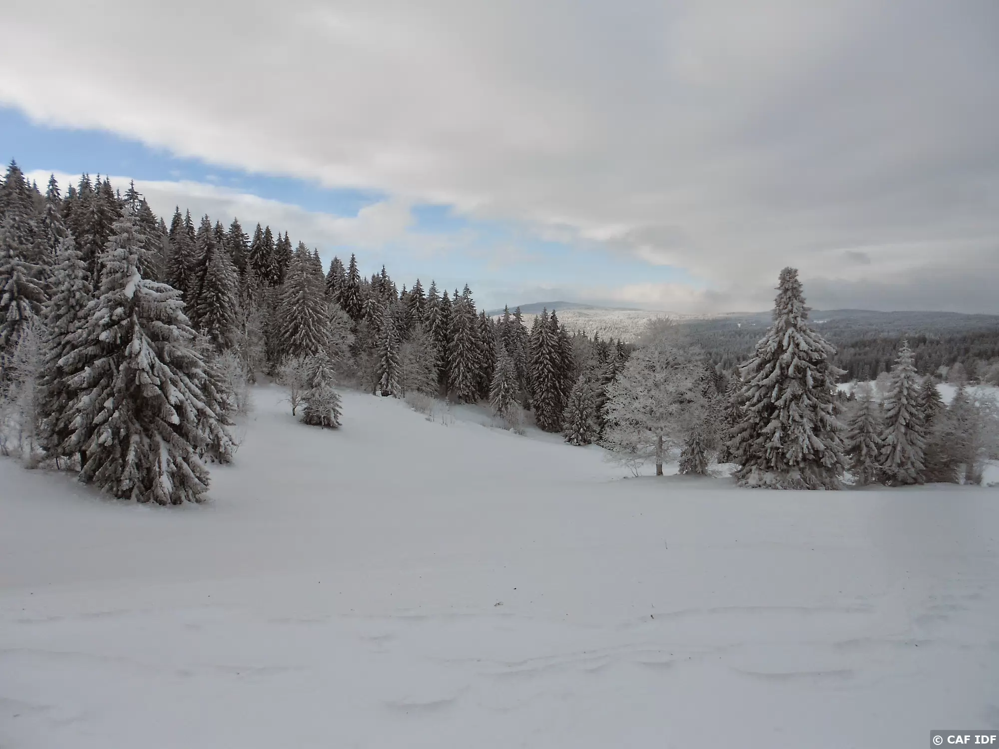 Belle couche de neige à Métabief, (alt. 1 000 m.)