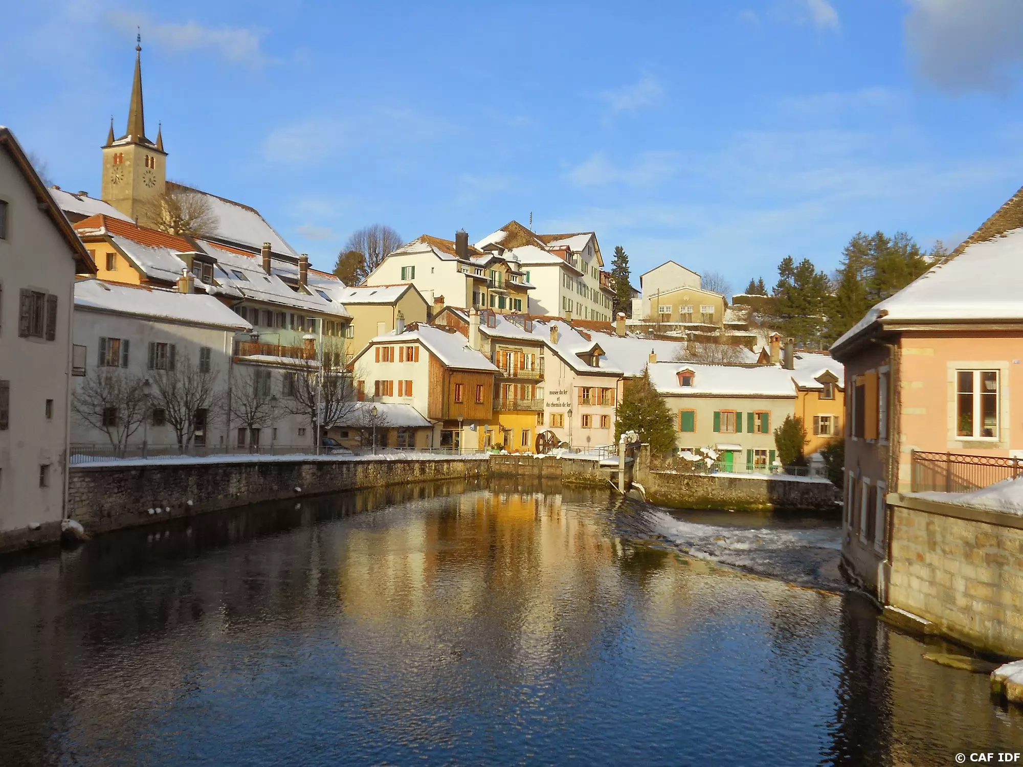 Temple protestant et la rivière Orbe, Vallorbe