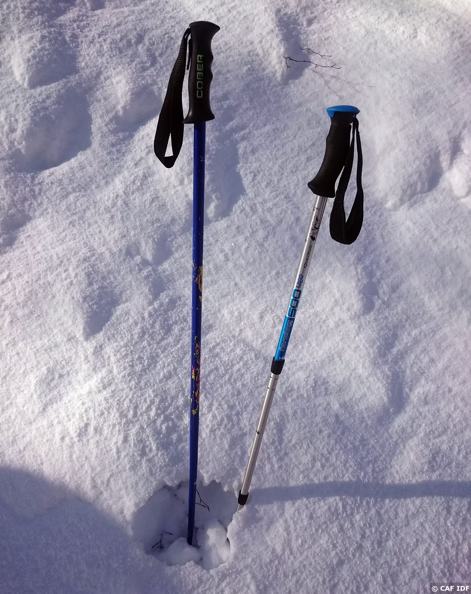 Bâtons dépareillés à cause d'un Labrador farceur qui a joué avec alors qu'il neigeait abondamment...Impossible à retrouver!