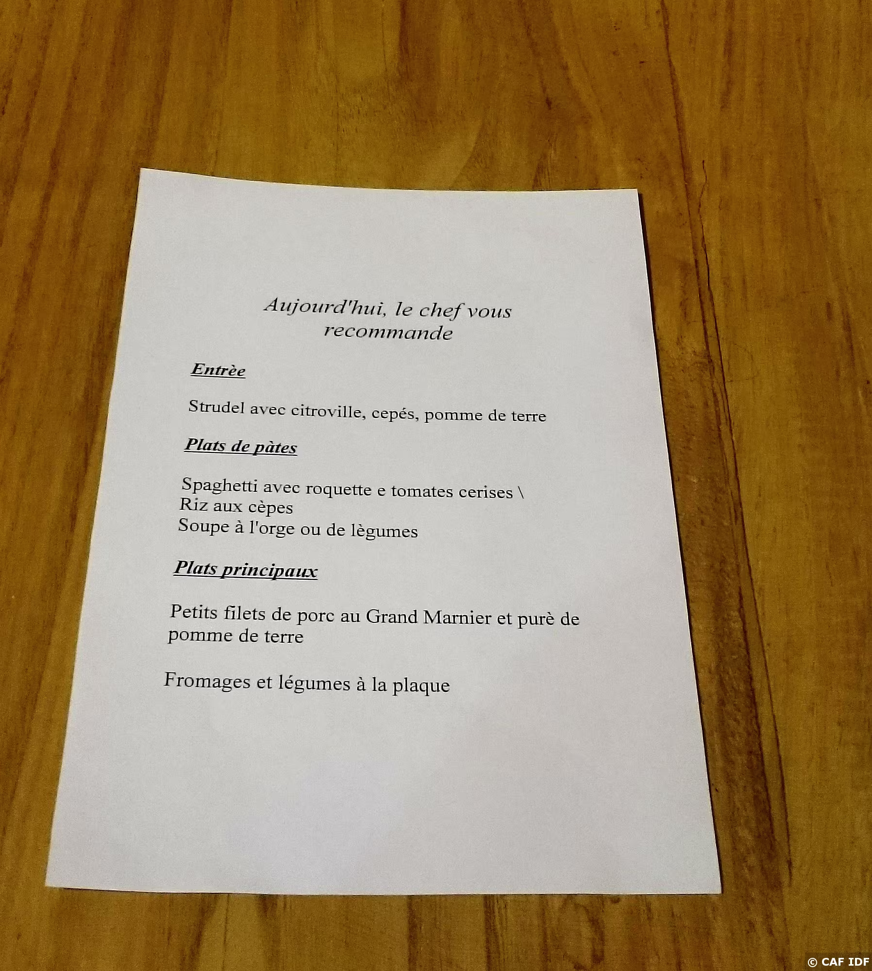 Voir les menus spécialement traduits pour nous