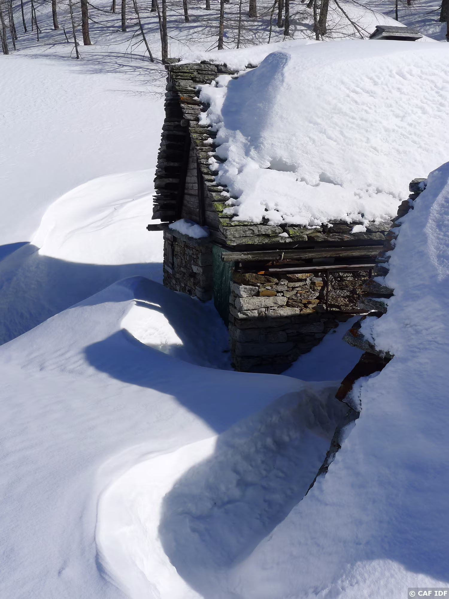 Bergerie de l'Alpe Misanco, sous une épaisse couche de neige.
