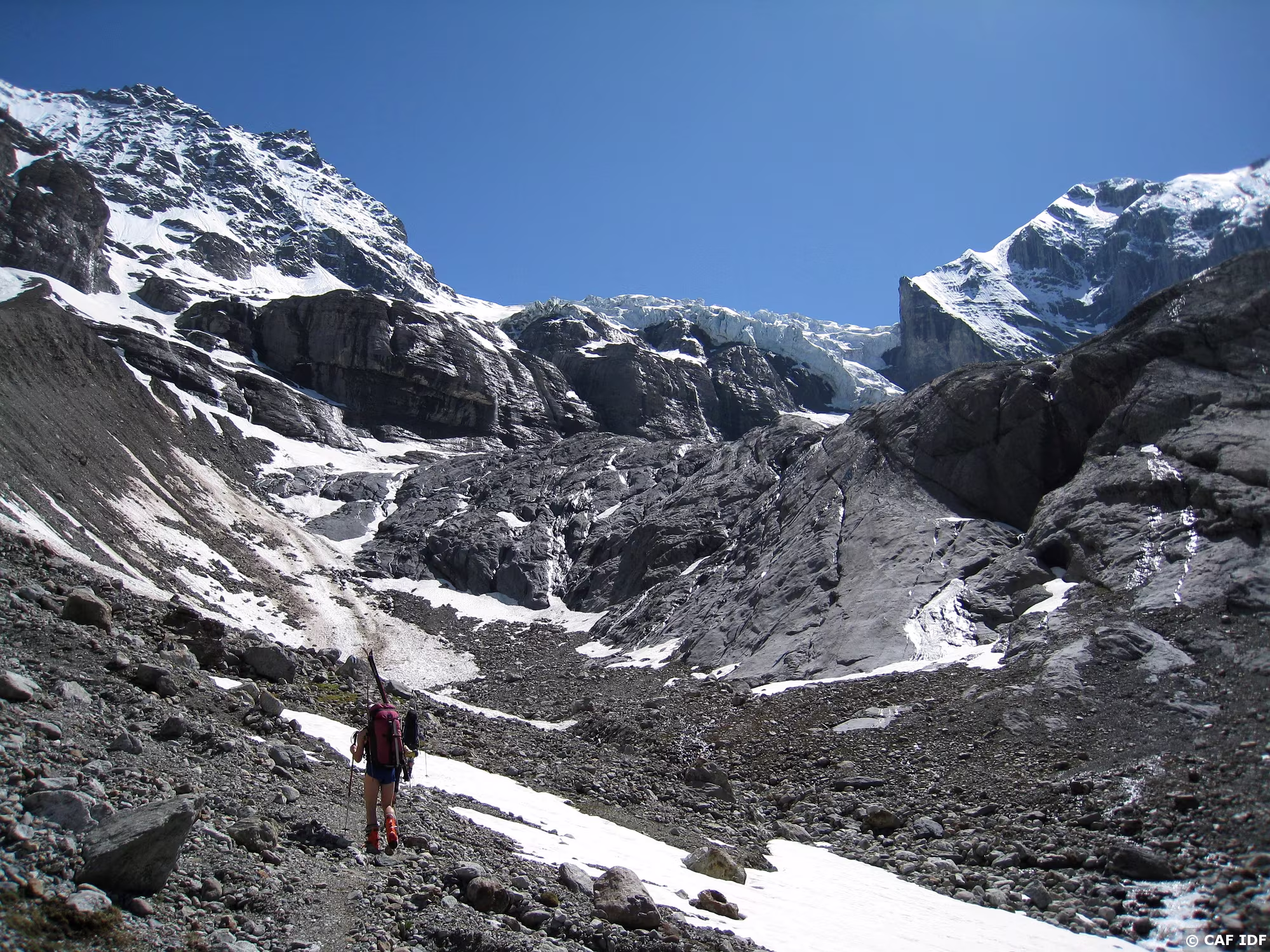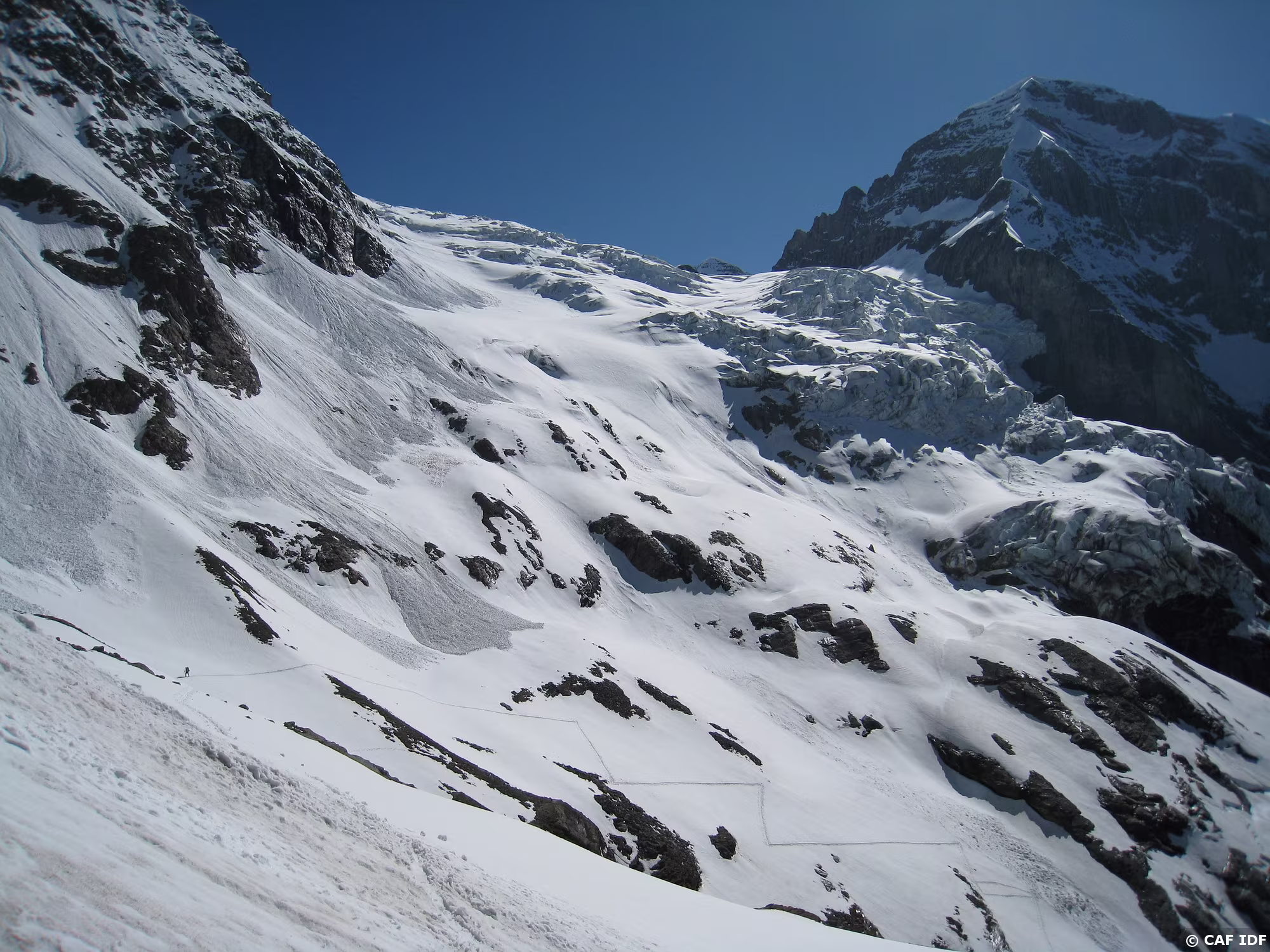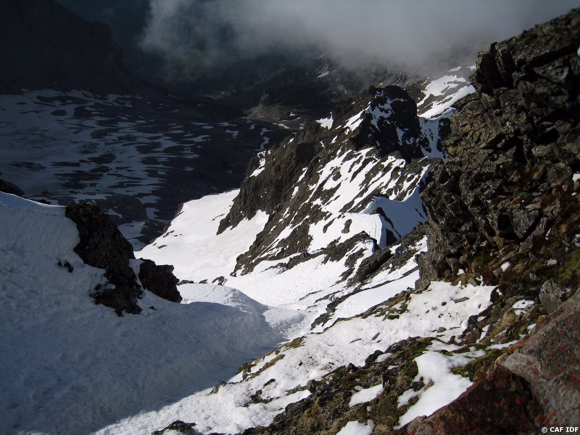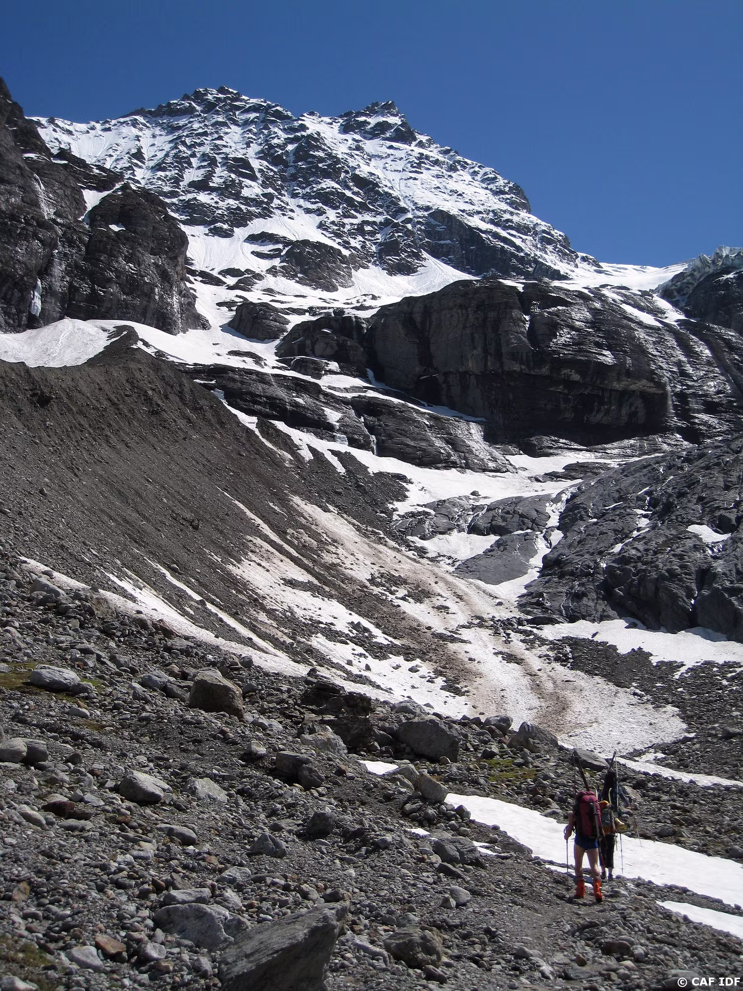 2010-06-05_17 L'itinéraire de montée depuis la brèche 3032 à gauche
