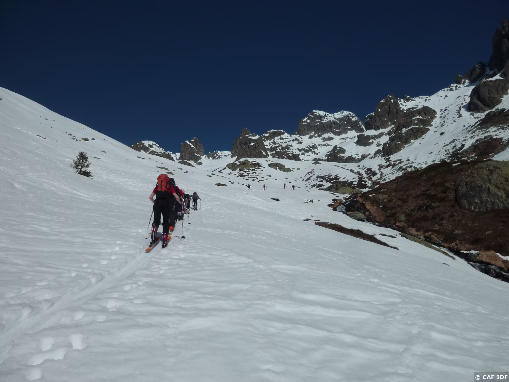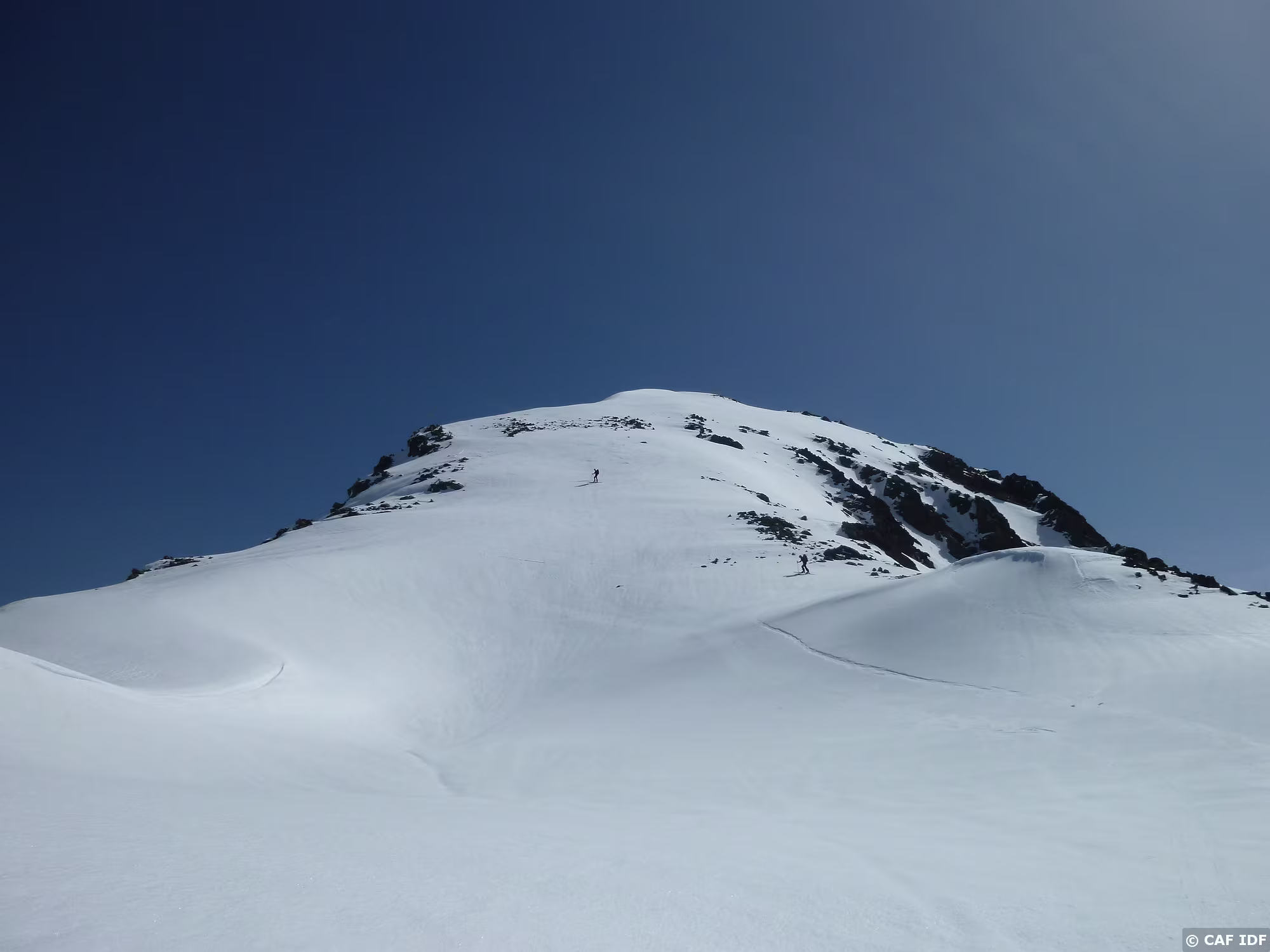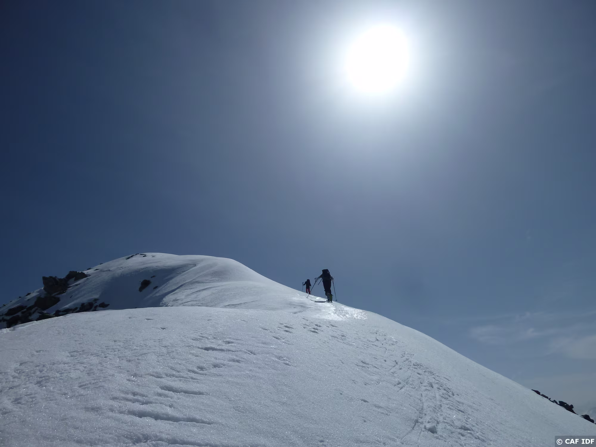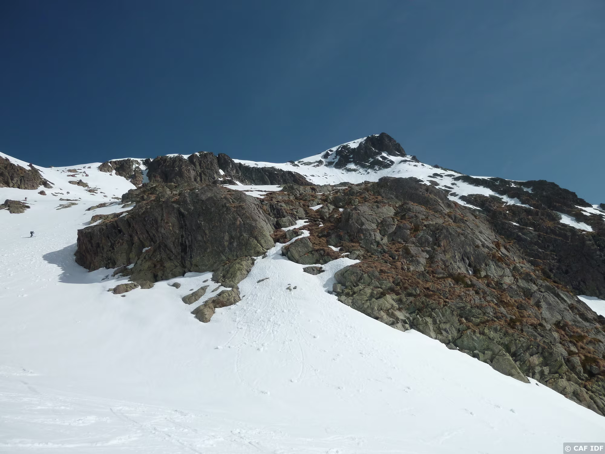 On montera sur le peu de neige restant à droite de la crête