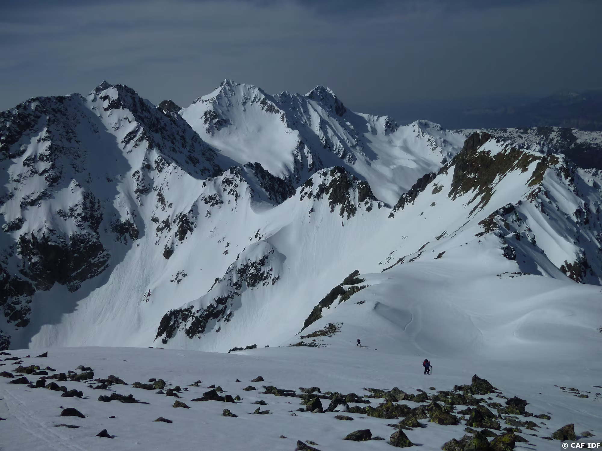 Petite pause avant la redescente sur toile de fond des Aiguilles d'Arves