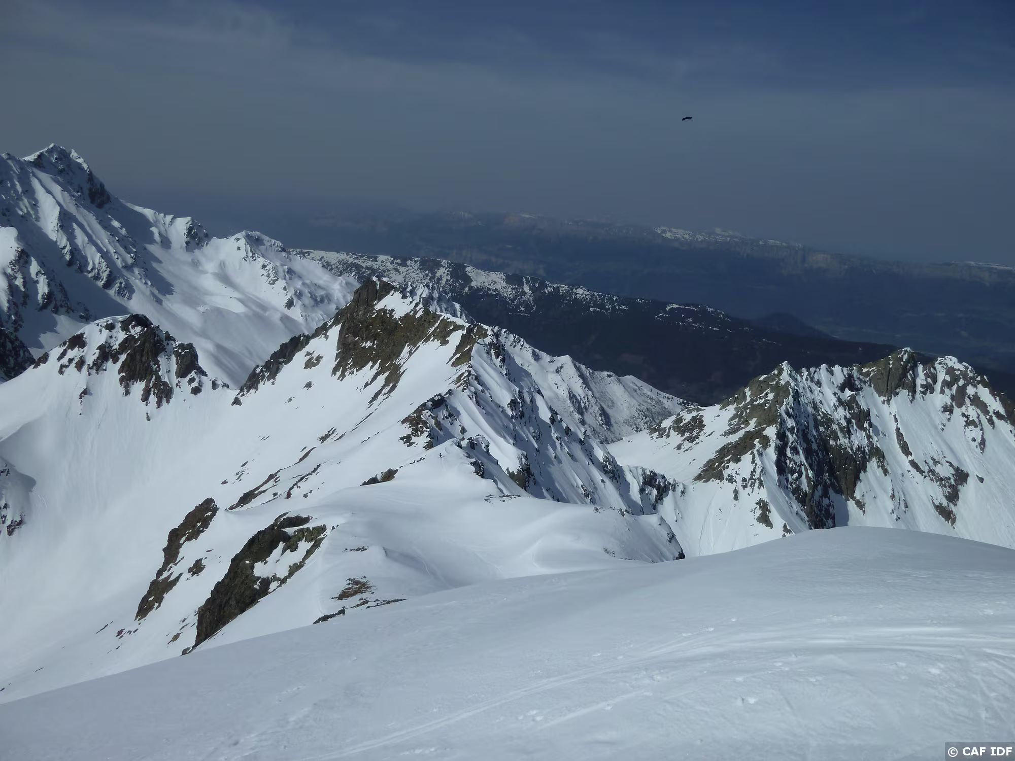 Du sommet du Grand Morétan, les Aiguilles d'Arves un peu dans la brume