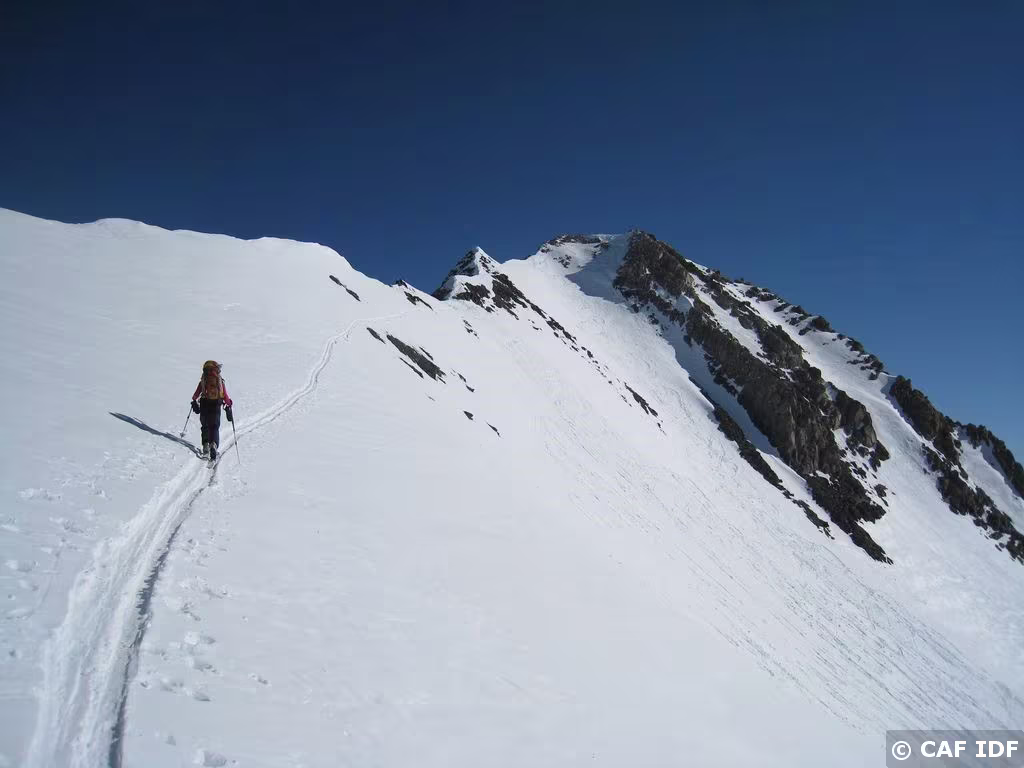 Au sommet du couloir de la Lauza