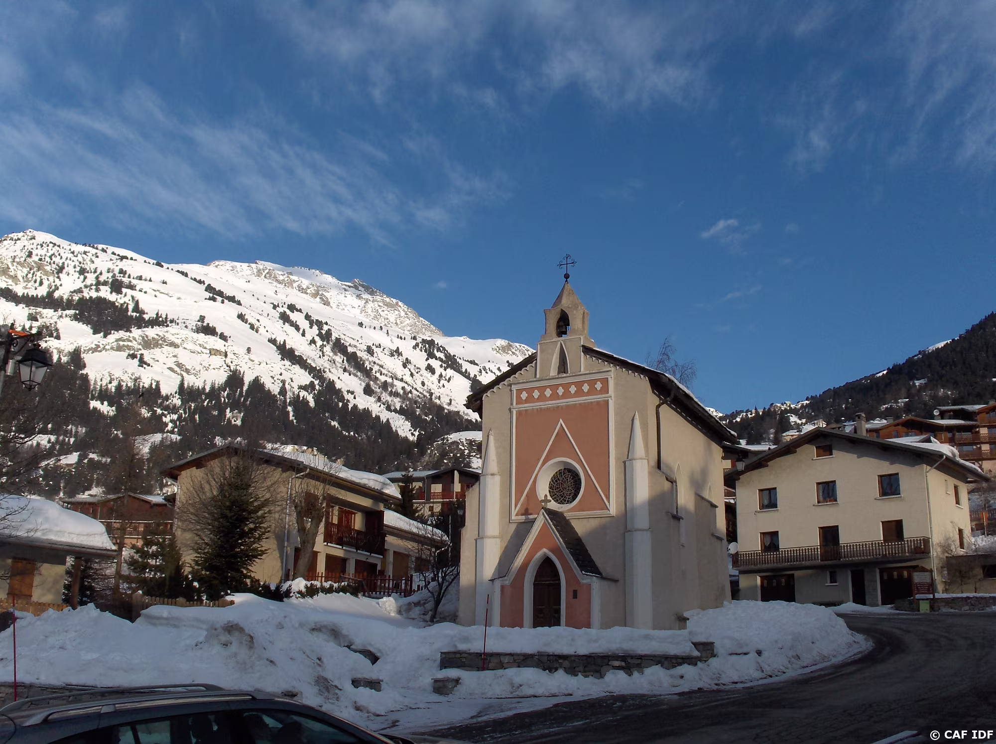 Un beau soleil et la boulangerie vient d'ouvrir en face de la chapelle