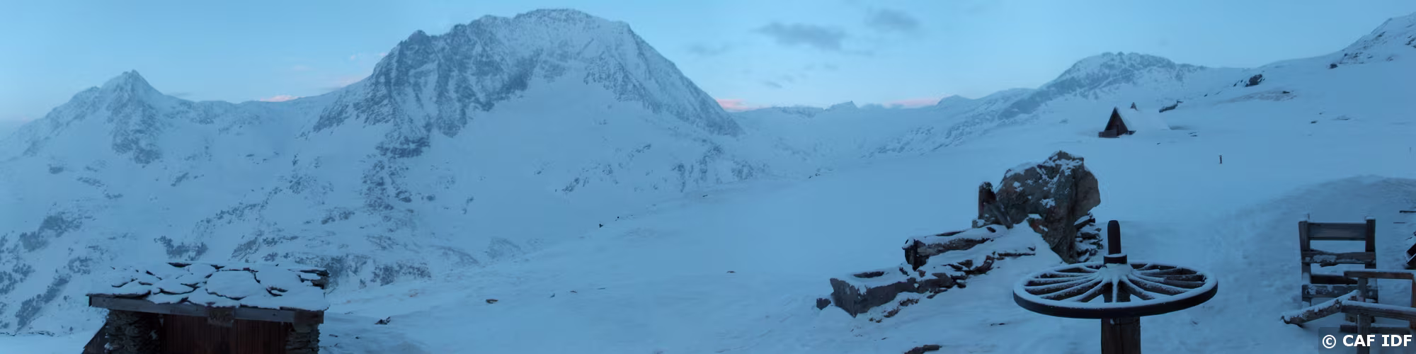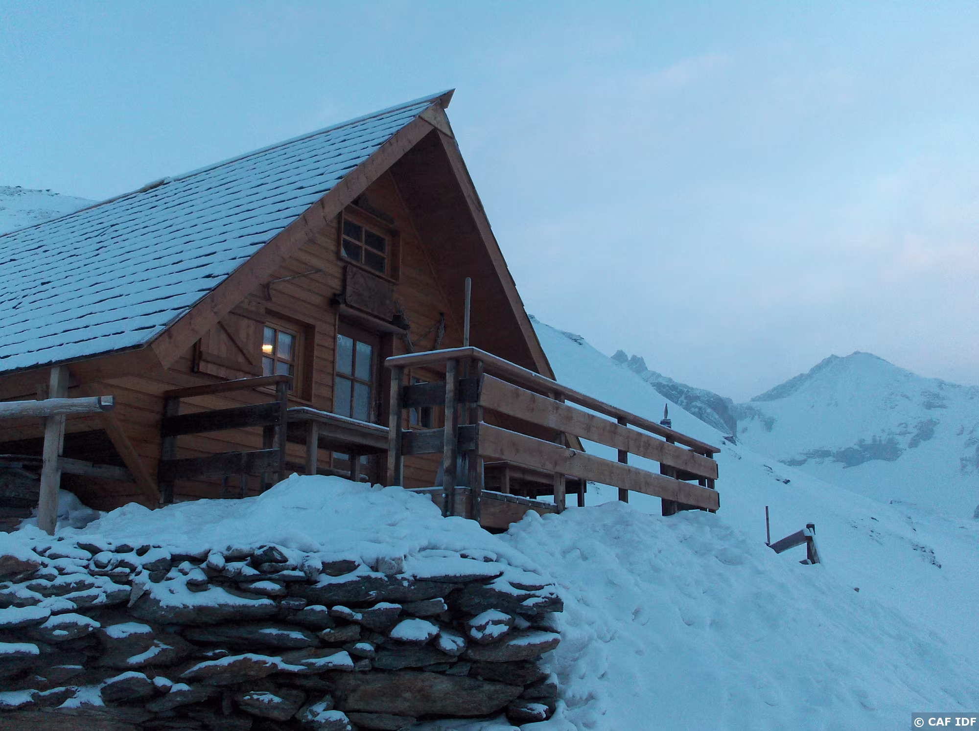 Arrivée au refuge de la Dent Parrachée, ça floconne...