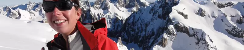 Pause à mi-pente. La meije derrière