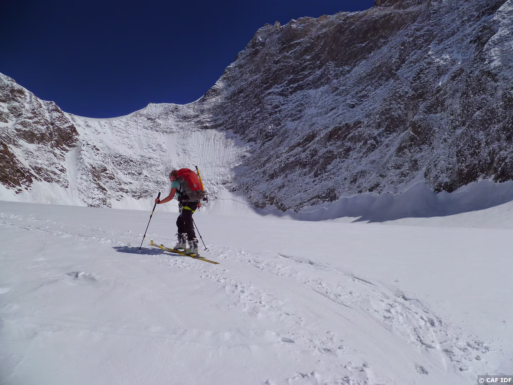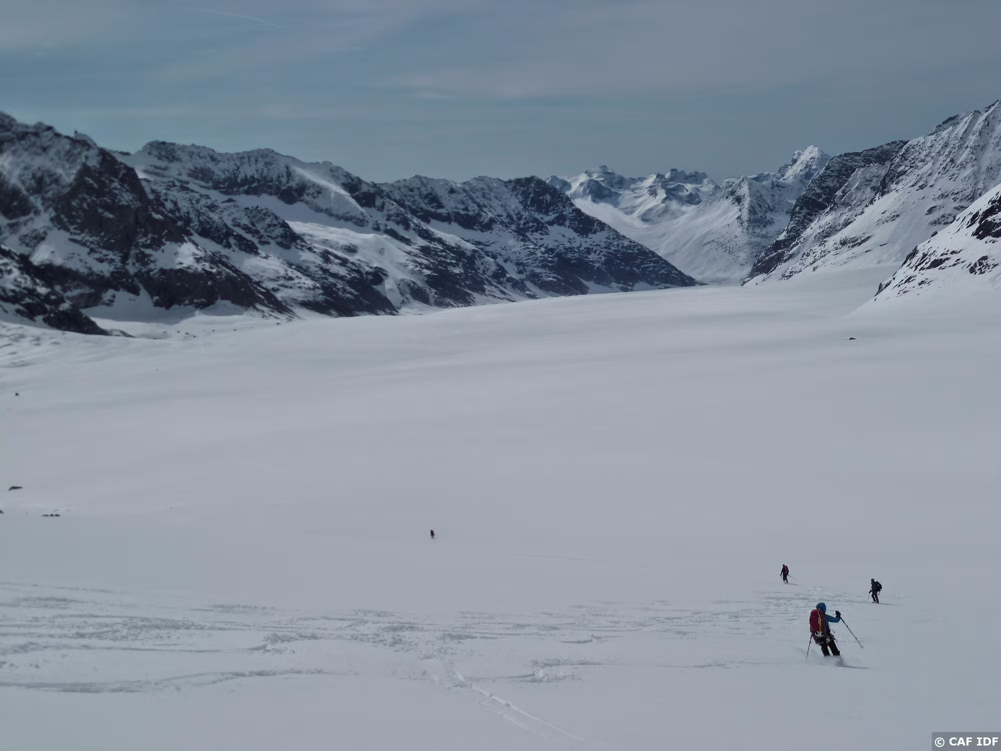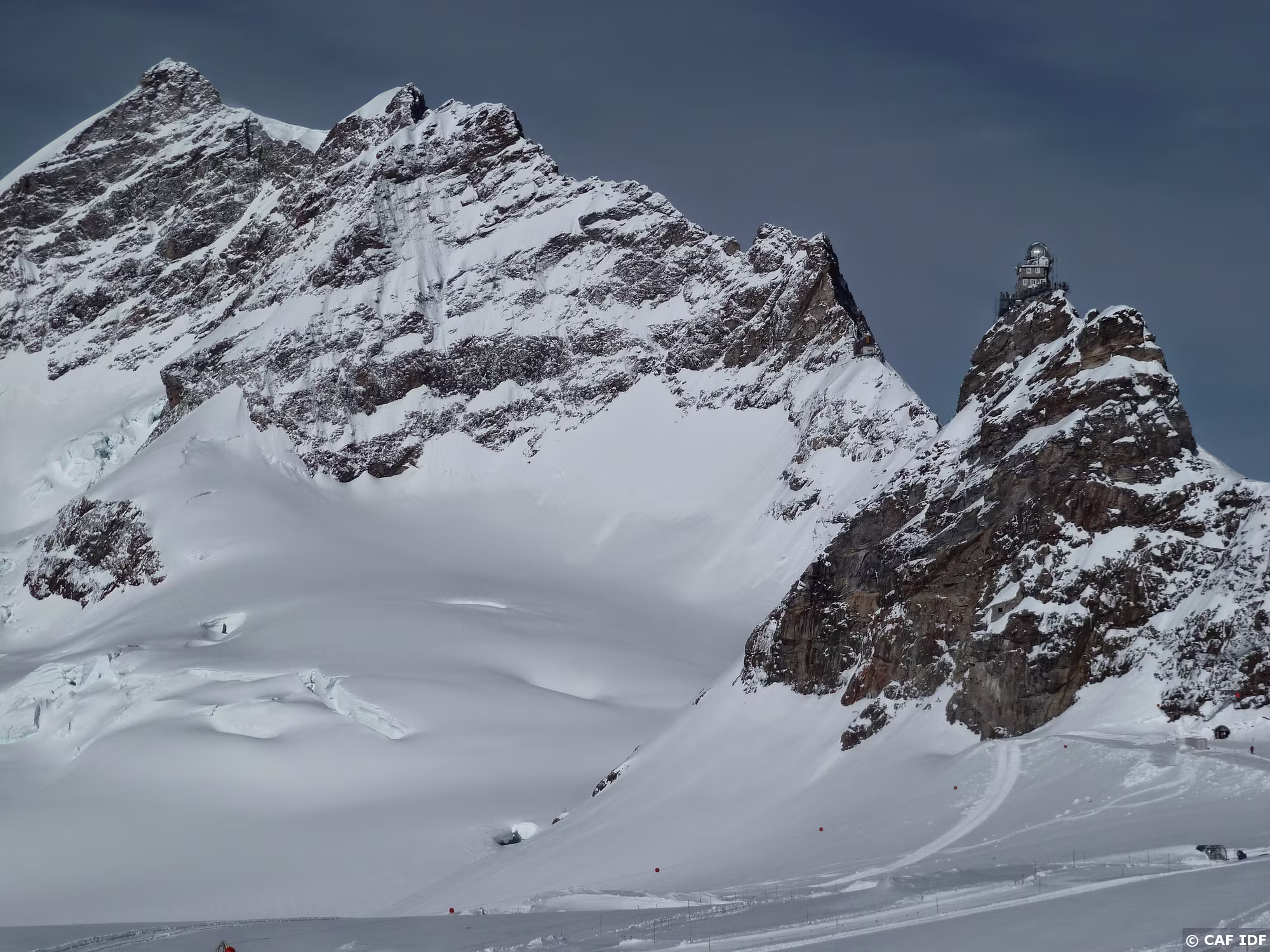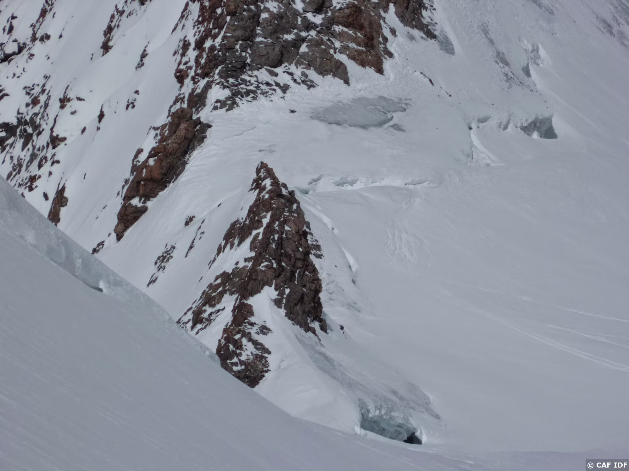 Montée au Finsteraarhorn en évitant les plaques du couloir au dessus du refuge. Elle est tracée jusqu'au col...et après?