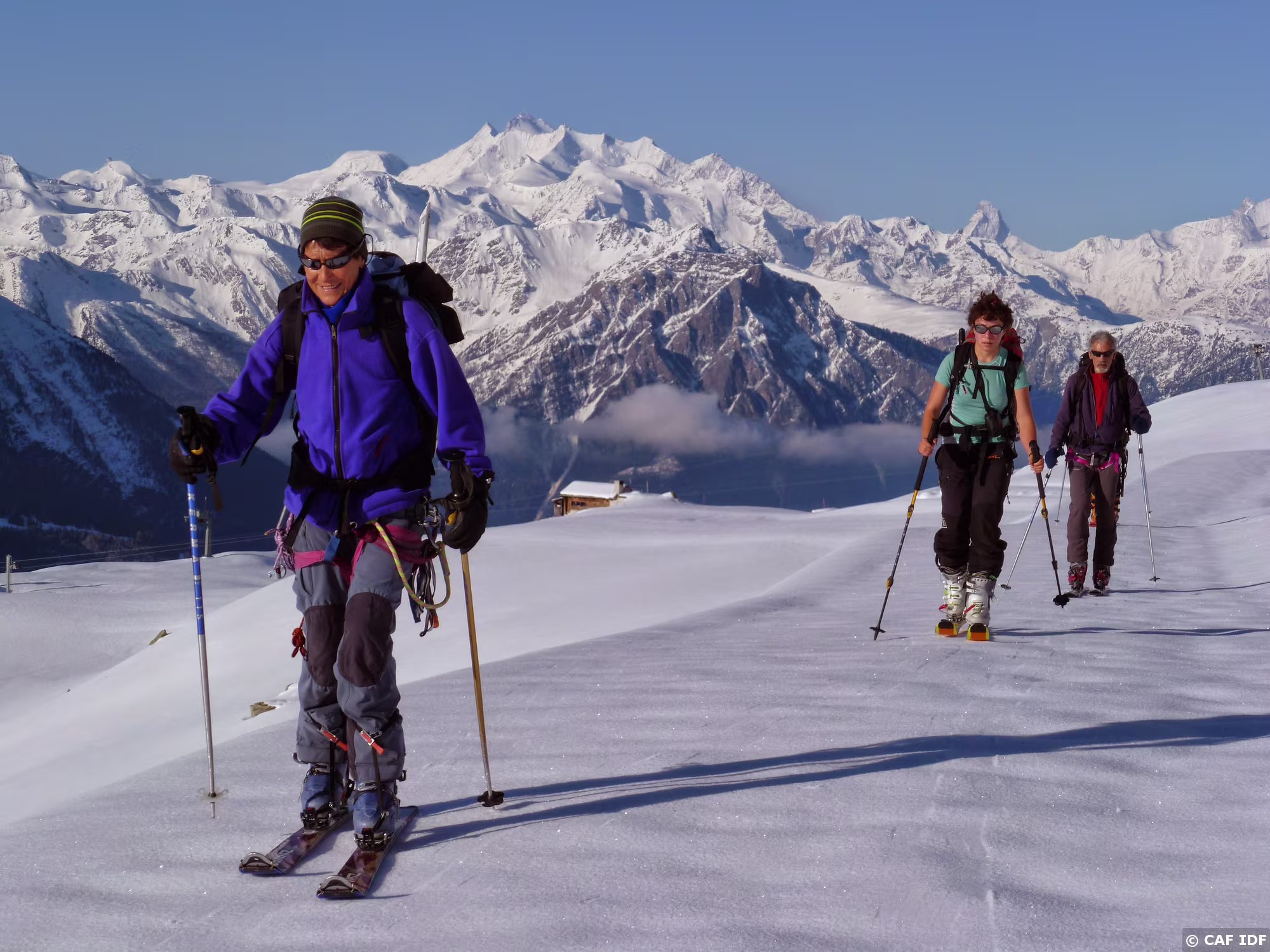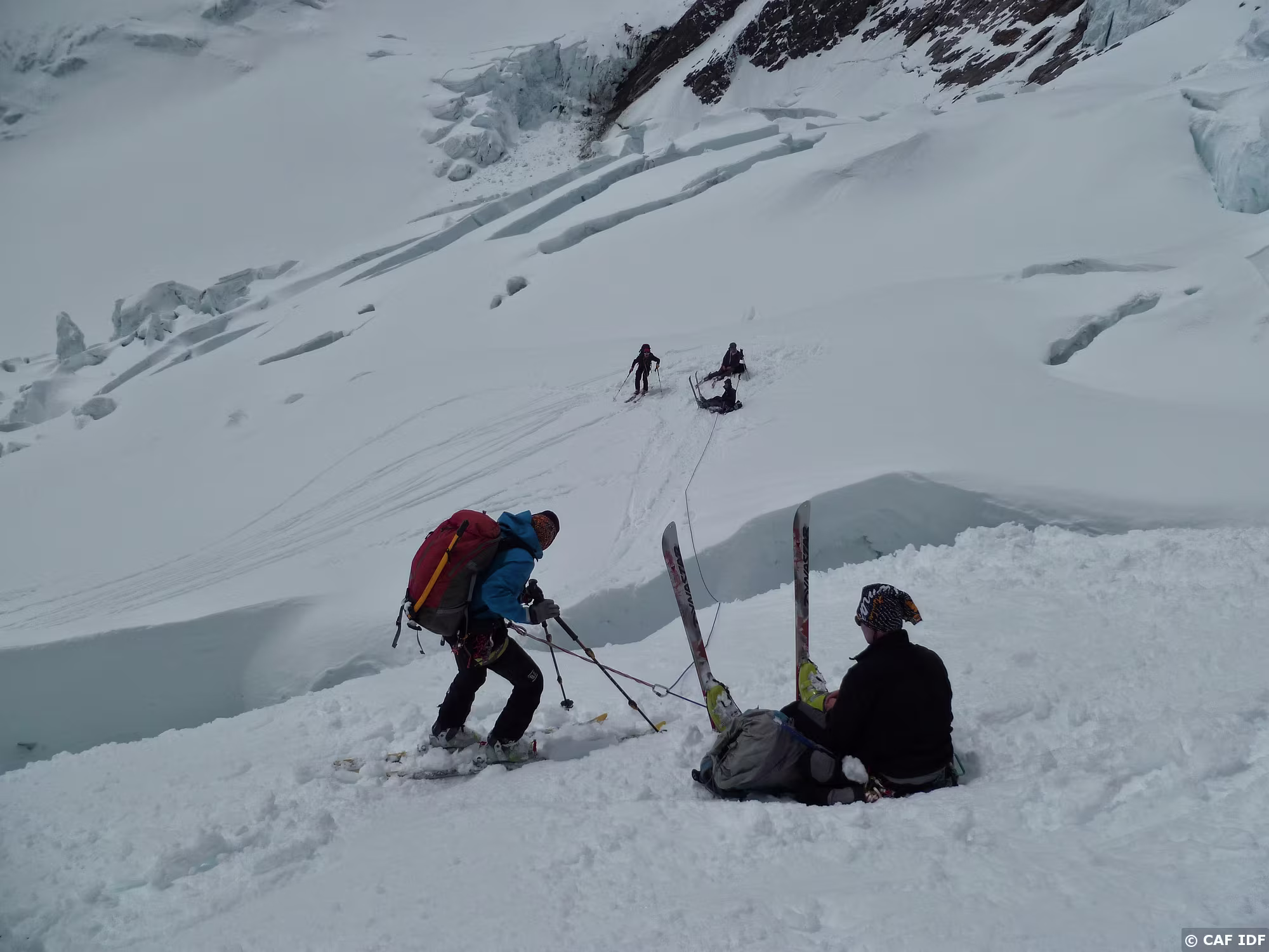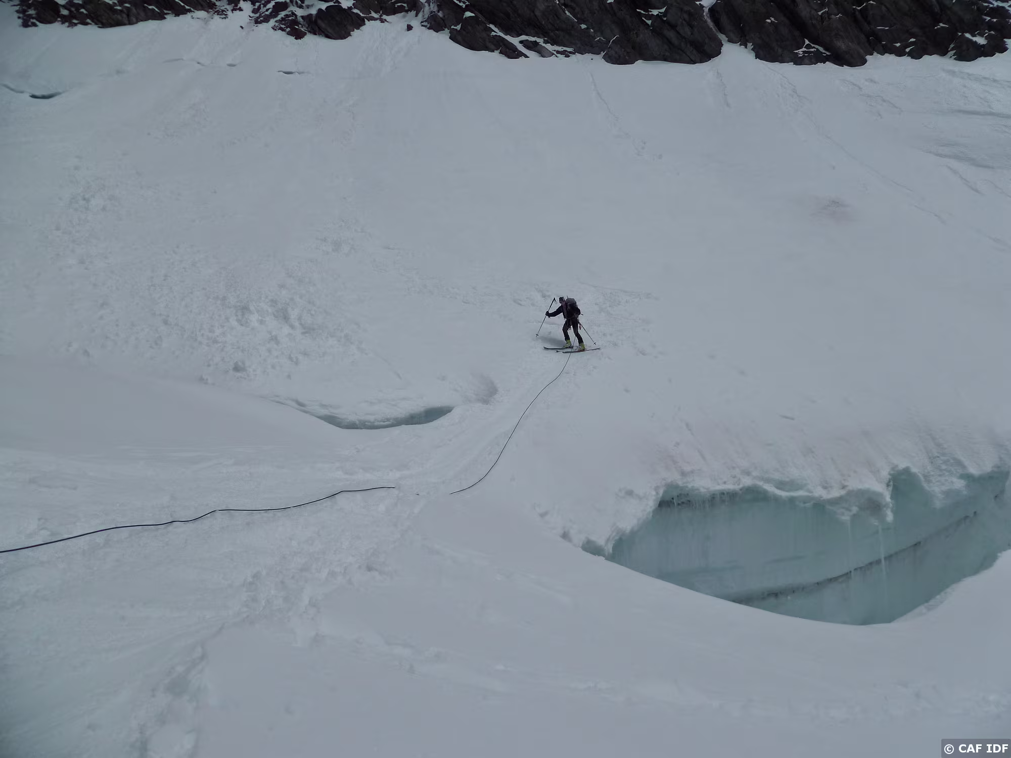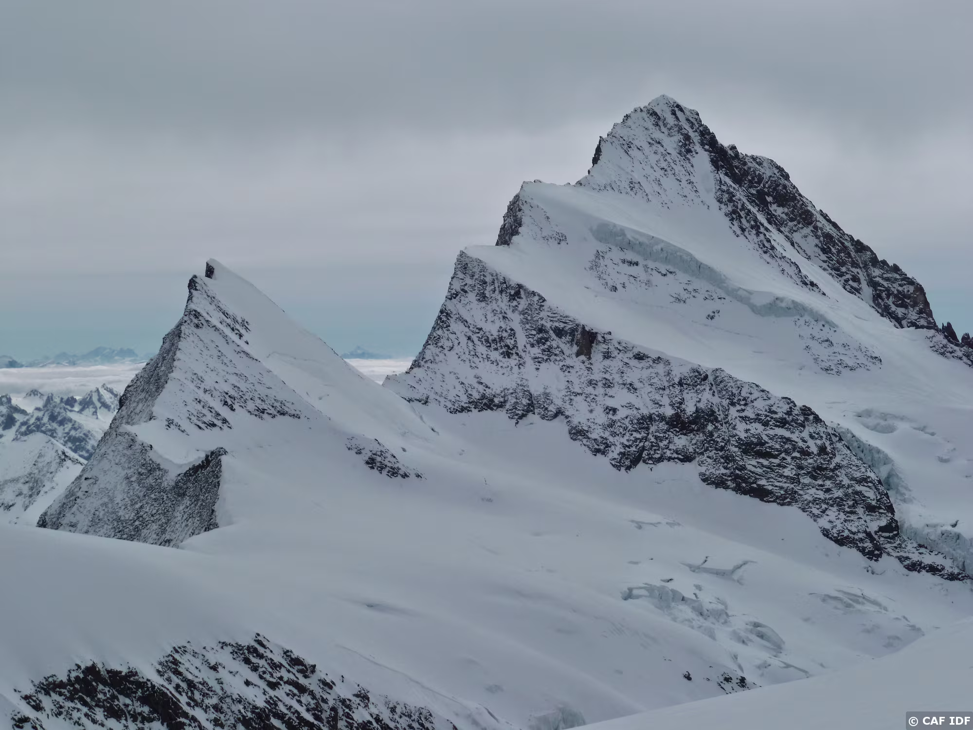 Montée au Finsteraarhorn en évitant les plaques du couloir au dessus du refuge. Elle est tracée jusqu'au col...et après?