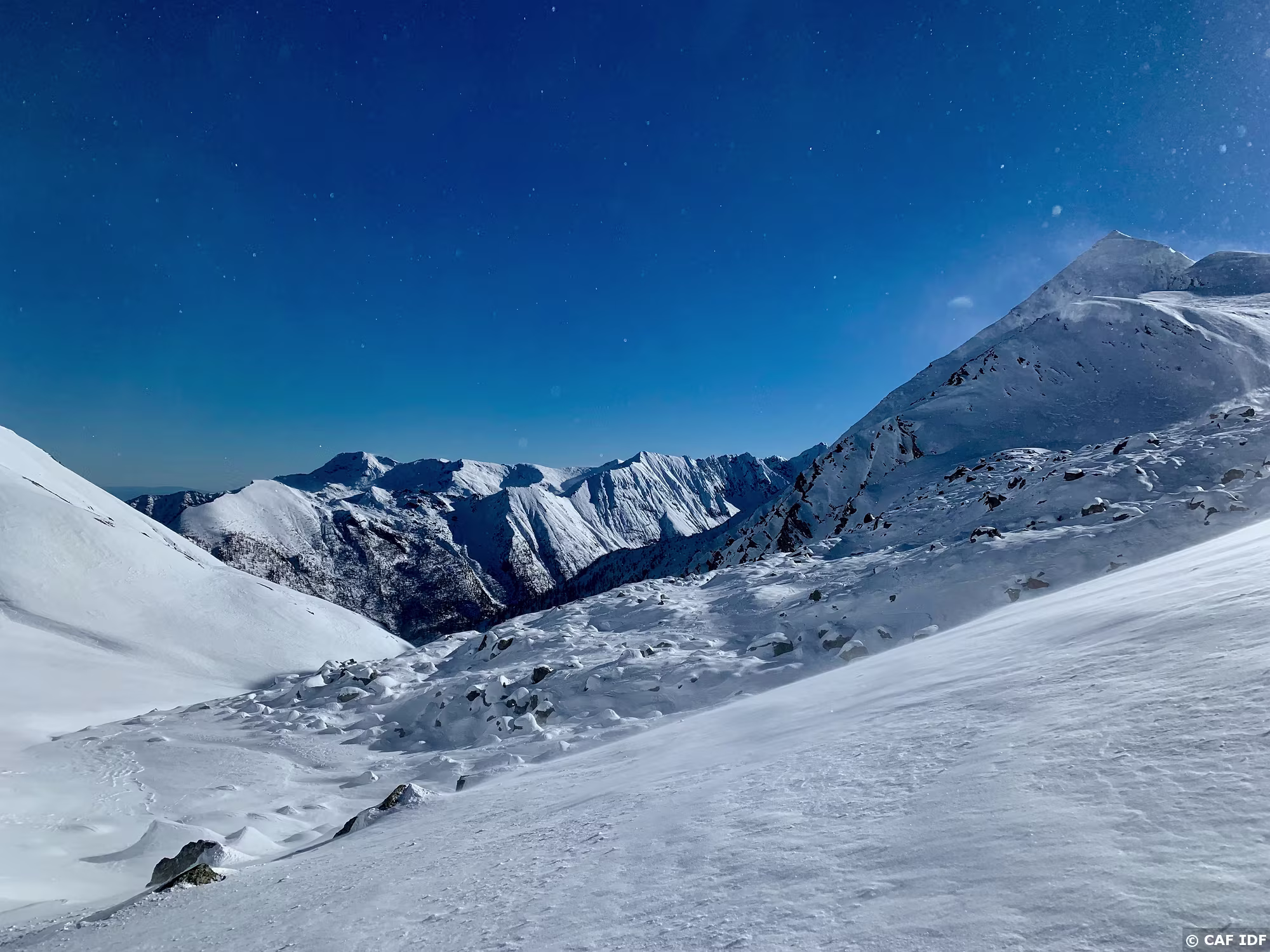 Retour avec le vent et la neige qui tombe à l'horizontal...