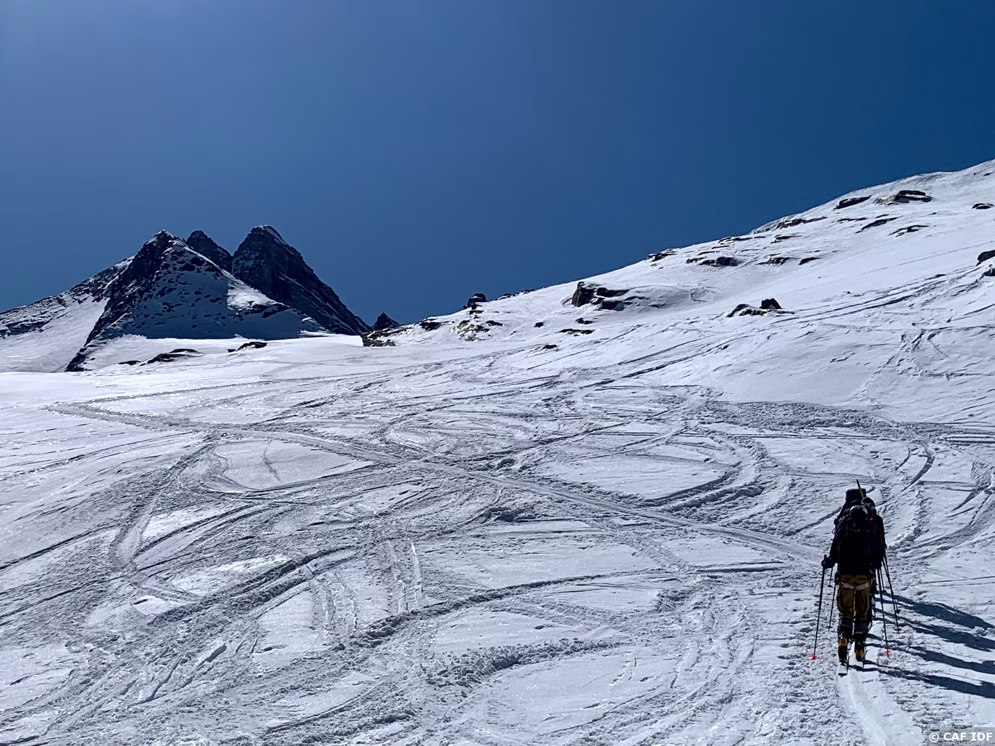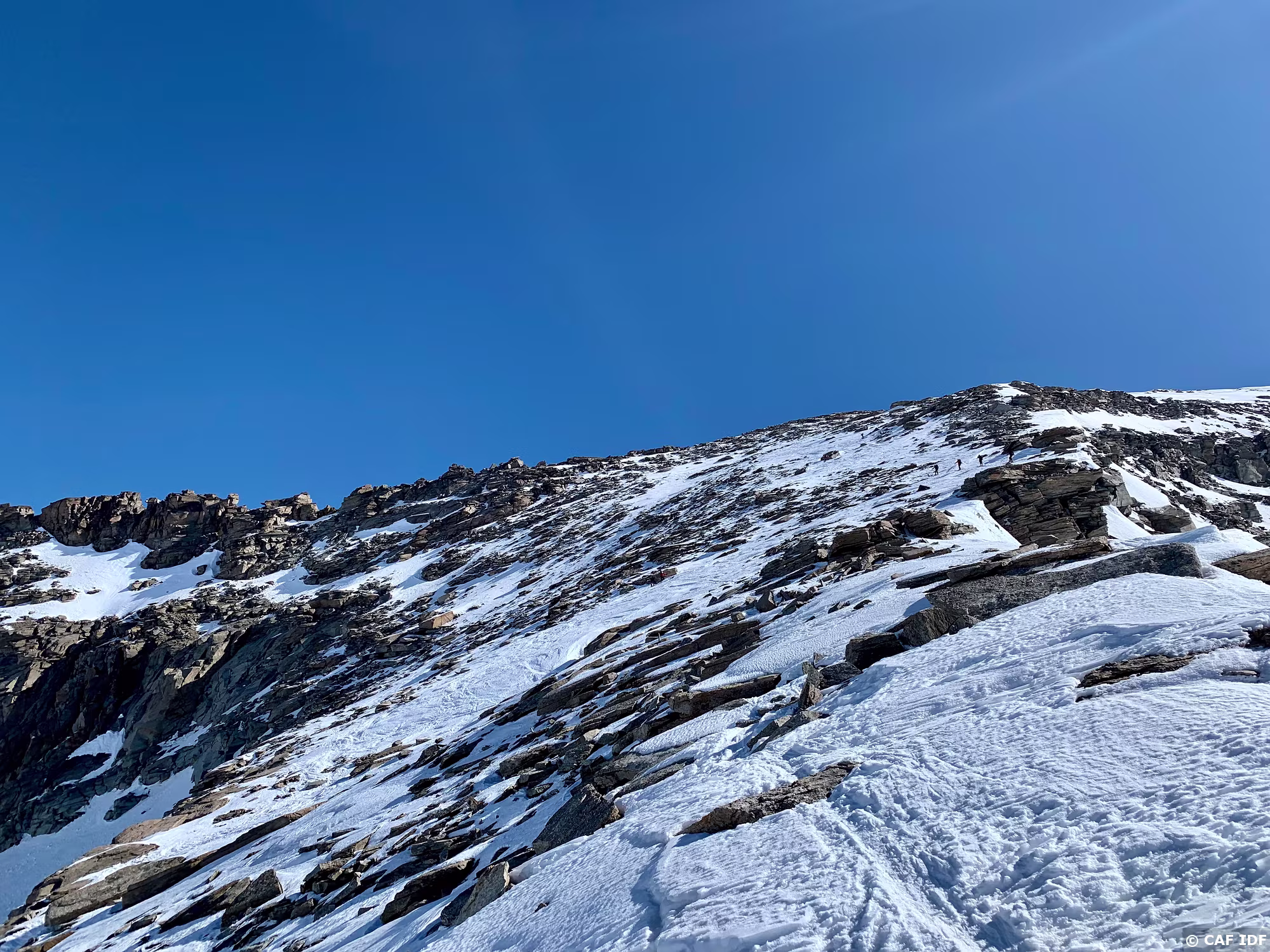 Peu neige... on laisse les skis et on termine en crampons
