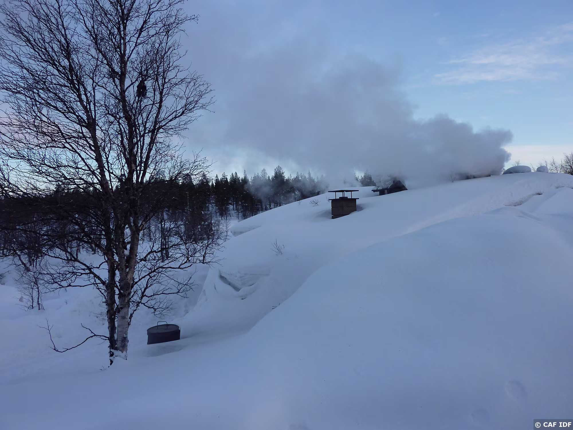 Le sauna fumée est en chauffe.