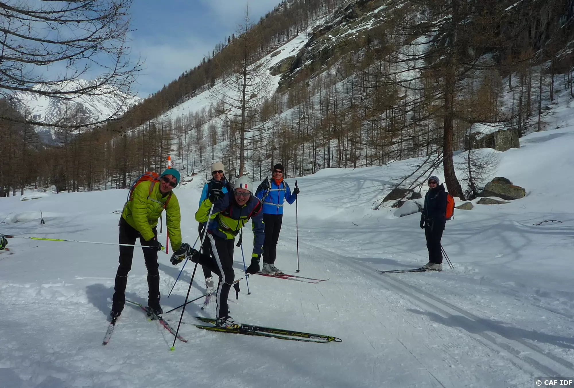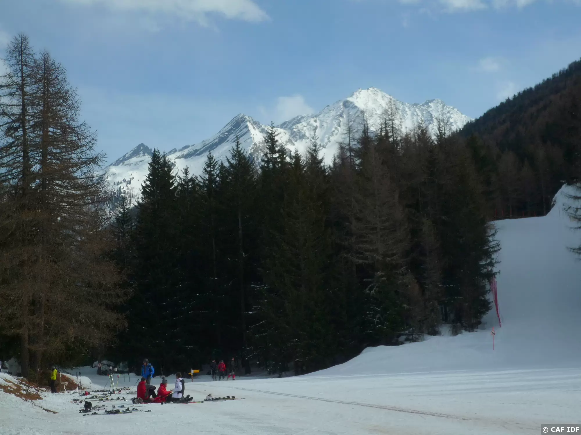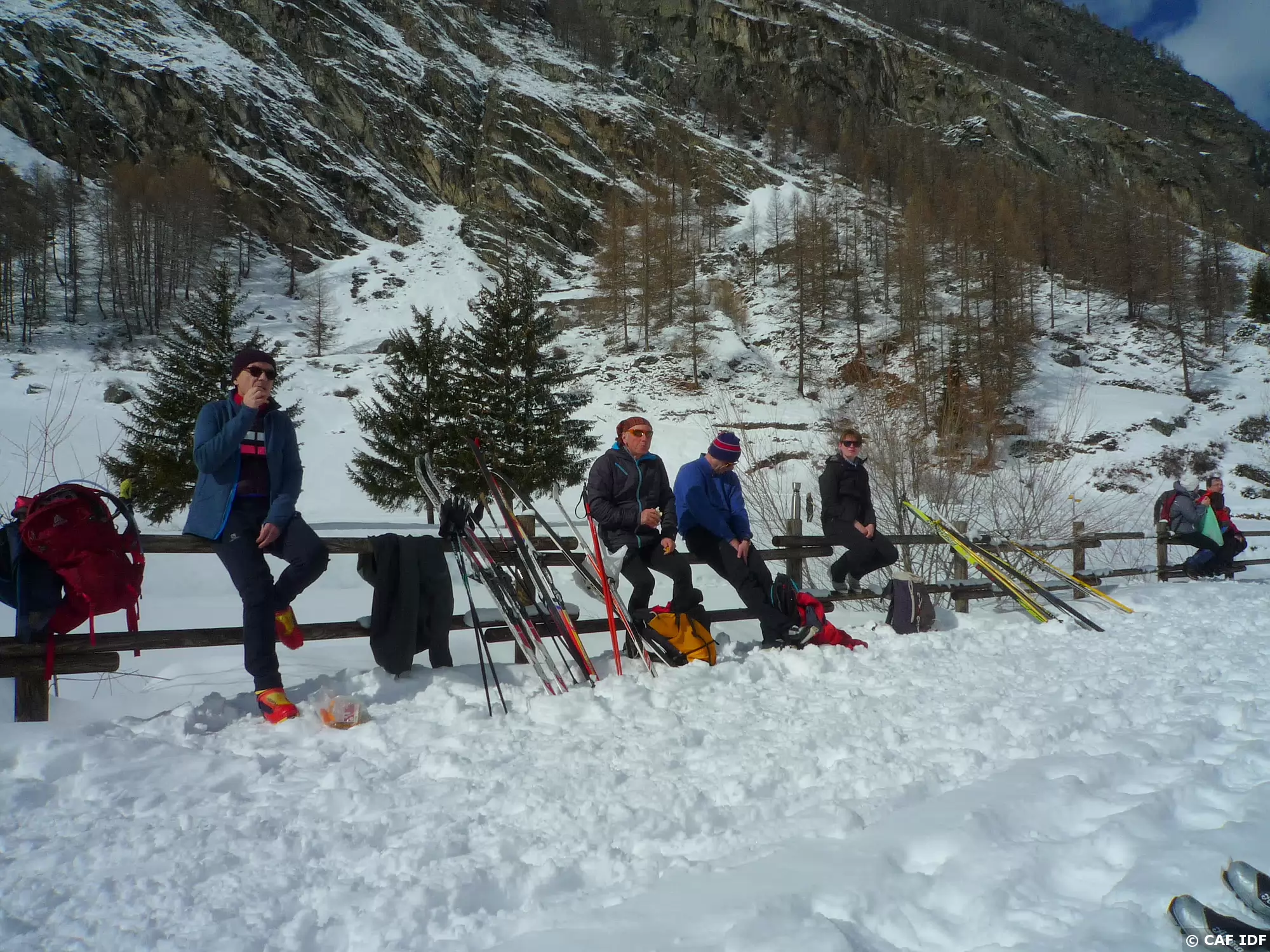 Les "ski-libres" pique-niquent sous les mélèzes